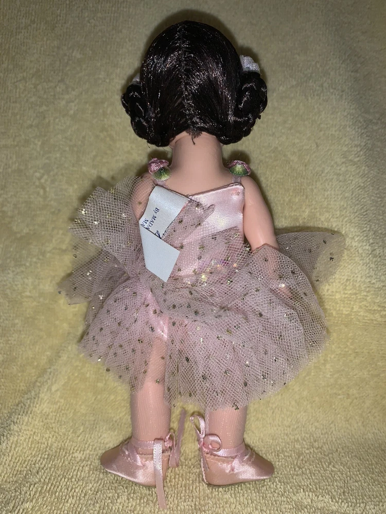 This beautiful Madame Alexander Americana Collection 100331 Ballerina doll is a timeless treasure perfect for all occasions. The doll has dark brown curly hair and brown eyes that open and close. It comes with removable clothes, a collector edition, and is a single unit. The doll is 8 inches long and 1 inch wide, with a light complexion and Caucasian ethnicity. This fashion doll is part of the Madame Alexander Americana Collection and is an original, handmade piece. It is a collector toy that is perfect for teens, adults, and youth. The packaging is original and has been opened. The doll is made of cloth and plastic materials and was manufactured in the United States in 1994. This doll is a must-have for any collector or fan of Madame Alexander.
