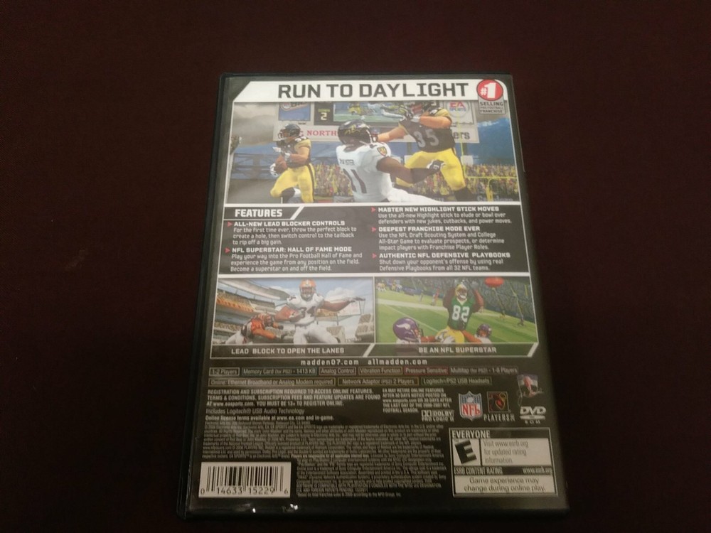 Madden NFL 07 (Sony PlayStation 2, 2006) PS2 GAME COMPLETE w/MANUAL FOOTBALL CIB. Disc has scratches but is tested and working Game is complete CIB W/ Manual We do our best to assure that you receive your order correctly and promptly but sometimes we can make an honest mistake, please contact us directly if you are not satisfied with your order for any reason. If your order is not as described we will cover all the return shipping costs and issue a prompt refund once it is receive. All items must be sent back in their original condition with all parts or pieces along with the original packaging. If any order is sent back and is as described and there is nothing wrong with it, not in the original packaging or missing parts or pieces, you will be responsible to pay the return shipping costs and there will be a 35% restocking fee to help recoup some of the original shipping and handling costs, Ebay and Paypal fees no exception