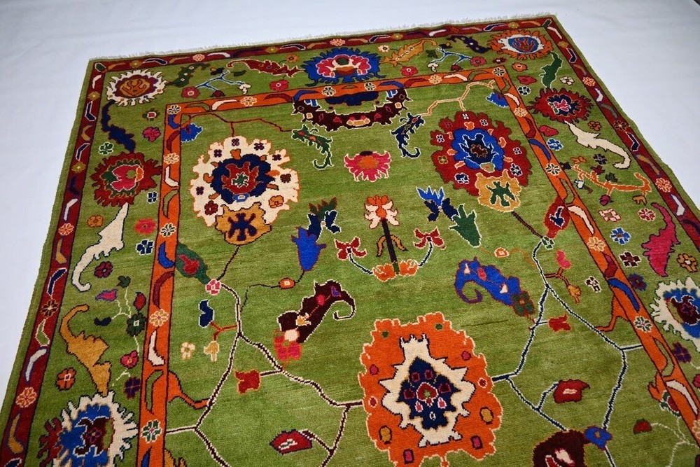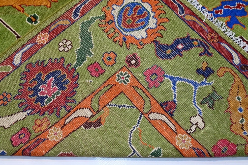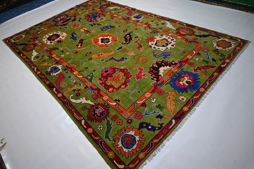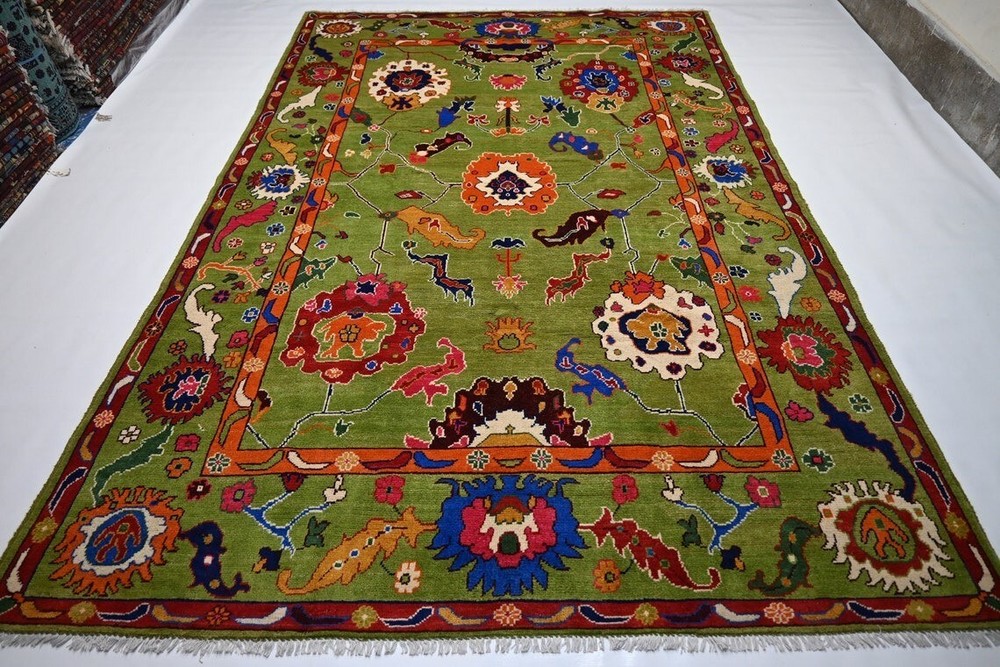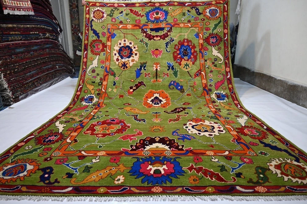 Pile Type: Cut Item Width: 5 feet Country of Origin: India Features: Easy to Clean, Eco Friendly Original/Reproduction: Original Country/Region of Manufacture: India Item Length: 8 feet Pile Height: Medium Size: Custom Room: Any Room Model: Knotted Time Period Manufactured: 2020-Now Color: Green Pattern: Floral Material: 100% Wool Style: Traditional Personalize: Yes Weave: Hand-Knotted Production Technique: Knotted Department: Kids, Adults Theme: Flowers Regional Design: Oushak Item Thickness: 0.5 in Type: Area Rug Brand: Hallolo Shape: Rectangle Care Instructions: Avoid Harsh Chemicals MPN: HKBL Era: 21st Century (2000-Now)