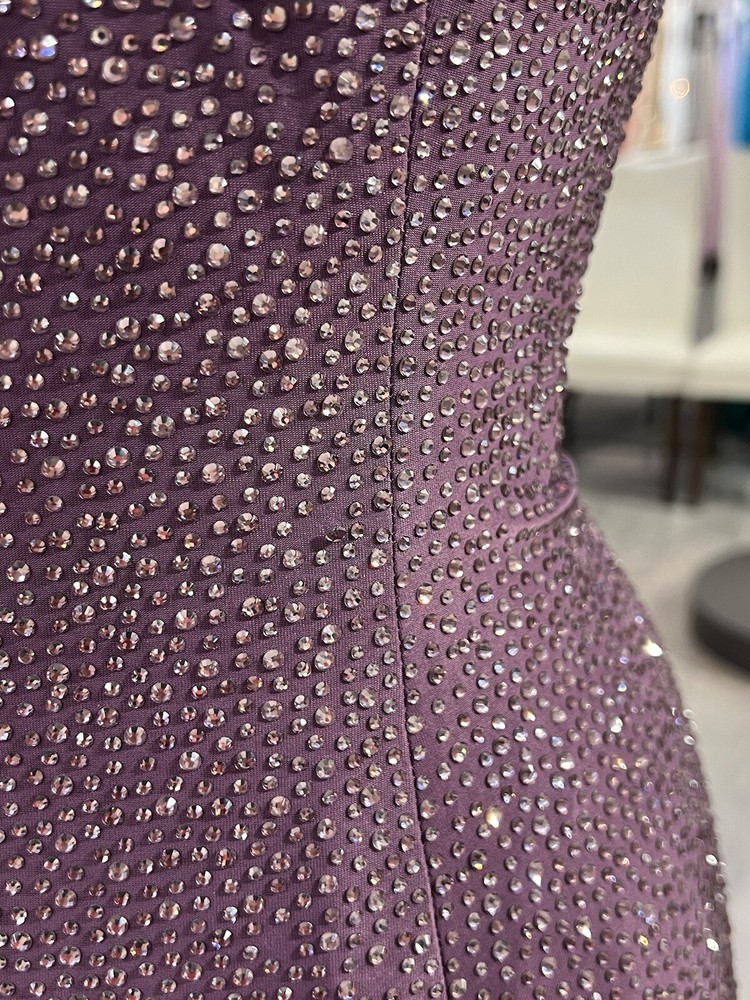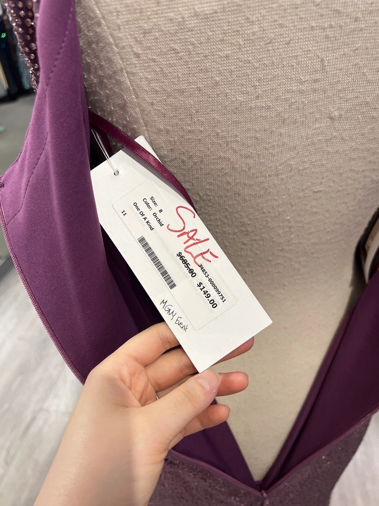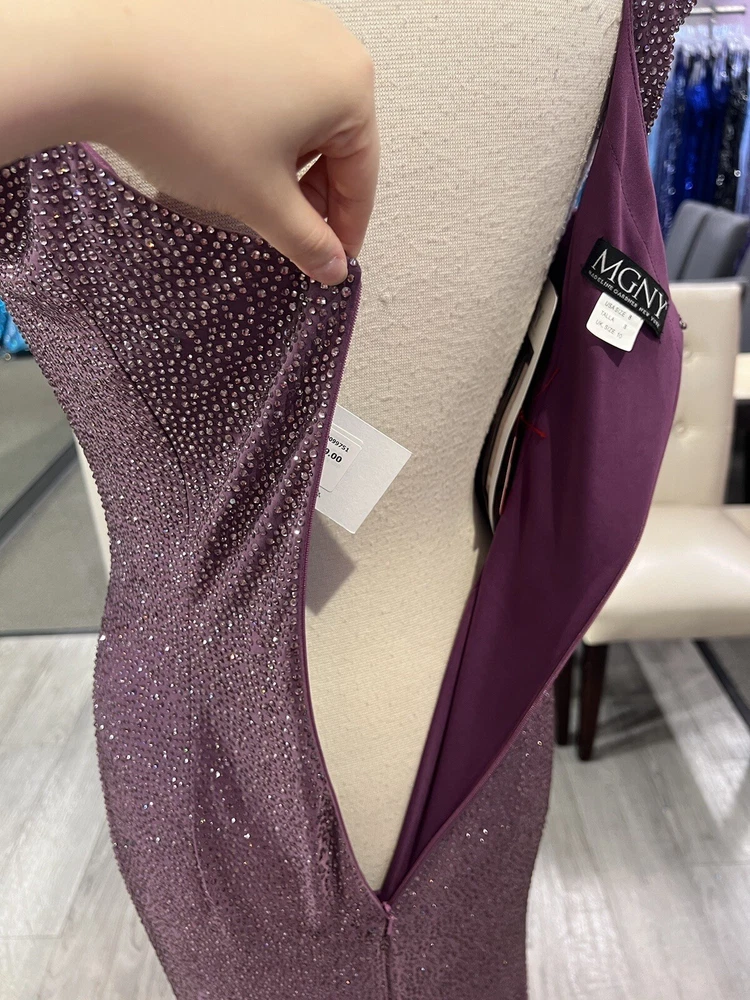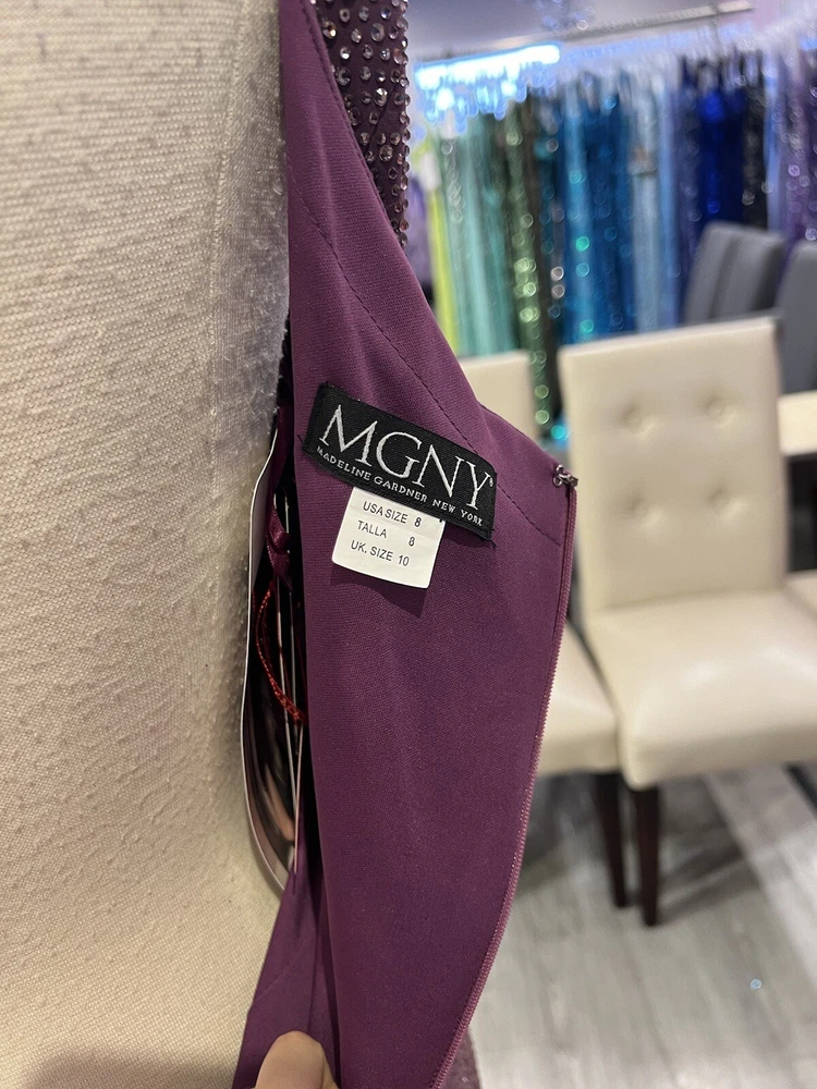 This MGNY gown was for sale in a dress boutique for $685 and is now on sale for $139! This stunning Madeline Gardner NY Orchid gown is the perfect choice for any formal occasion. The eye-catching purple color is complemented by intricate crystal studded accents, adding a touch of glamour to your look. The gown is made with high-quality materials and attention to detail, ensuring a comfortable and flattering fit. The brand Madeline is known for its exquisite designs and this dress is no exception. With its timeless elegance and unique accents, it's a dress that you'll cherish for years to come. There are no defects in the actual material of the gown, however, some of the studs have fallen due to other gowns being hung beside it. The listing price has been adjusted for such reasons!