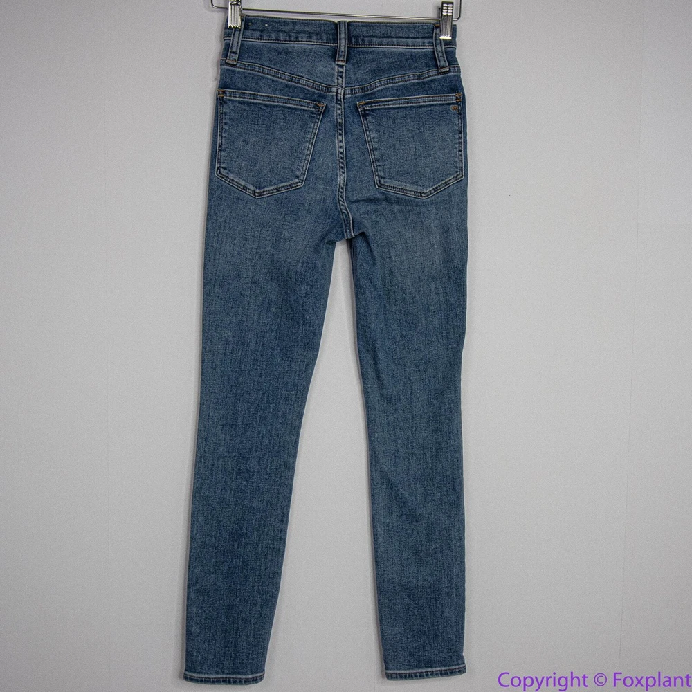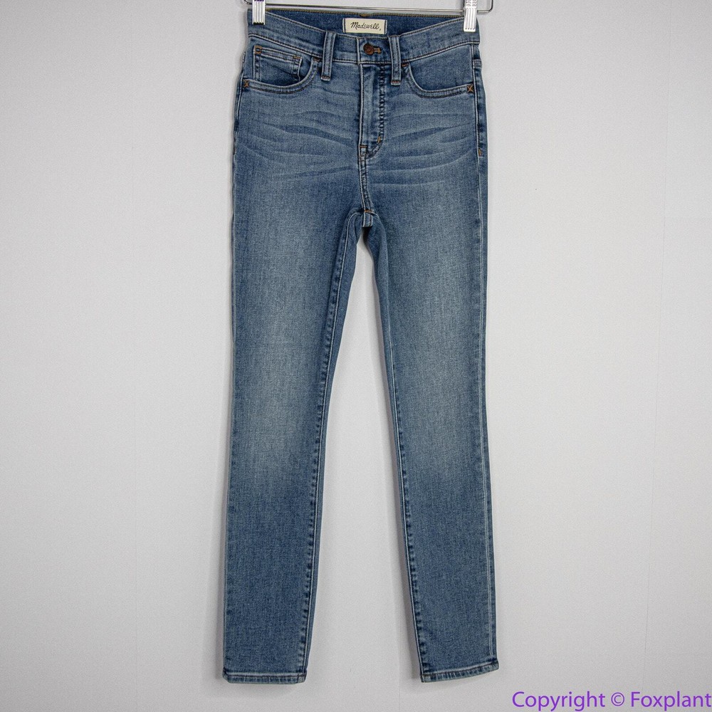 Madewell 10" High-Rise Roadtripper Authentic Jeans in Vinton Wash, 23 High rated on Madewell's website. Lightweight and supercomfy, these 10" high-rise skinny jeans are made of our new Roadtripper Authentic denim that has an old-school rigid look and tons of stretch. 76% cotton/22% poly/2% spandex denim. Magic Pockets. Item MD518 Measurements shown in photos are approximate and provided as a courtesy, not a guarantee of fit. Sometimes jean inseam measured by a yardstick from the crotch to the hem may be a little bit shorter than using a soft tape measuring along the seam. Excellent condition. No noticeable flaws or stains or damages. Smoke free, pet free home. Actual colors may vary due to differences in lightings and computer monitors.