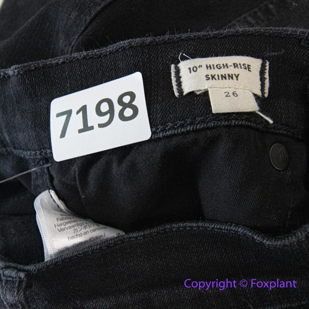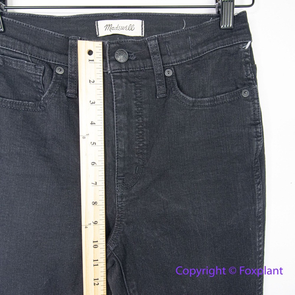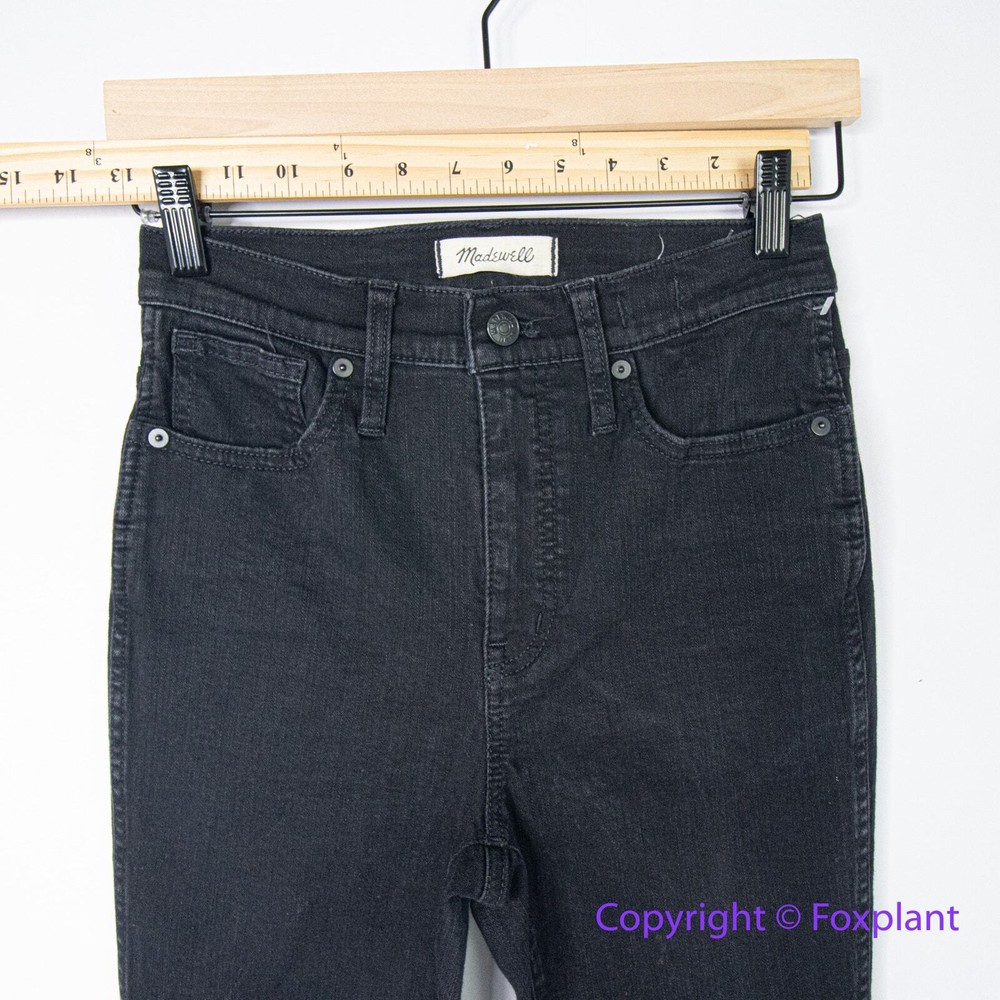 Madewell 10" High-Rise Skinny Jeans in black frost wash, 26 Please note: some lighter colored stripes as shown. stretch The cut: complete with the holds-you-in sorcery of our Magic Pockets® in front, these 10" high-rise skinny jeans are lean and legs-for-days sexy. The fabric: premium vintage-y stretch denim that hugs the body and bounces back like a pro (aka no 3pm bagginess). Premium 98% cotton/2% elastane high-stretch ISKO™ denim. Magic Pockets®. Machine wash. Item NG493 The measurements shown are approximate and are provided as a helpful reference, but not a guarantee of fit. The inseam is measured from the crotch to the hem with a yardstick, and it may yield a slightly different result compared to using a soft tape measure along the seam. The actual colors may vary due to differences in lighting conditions and computer monitor settings.
