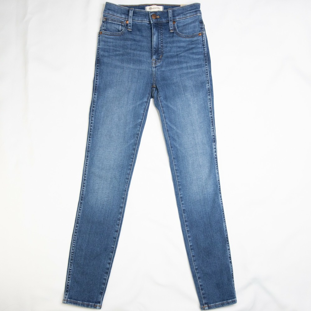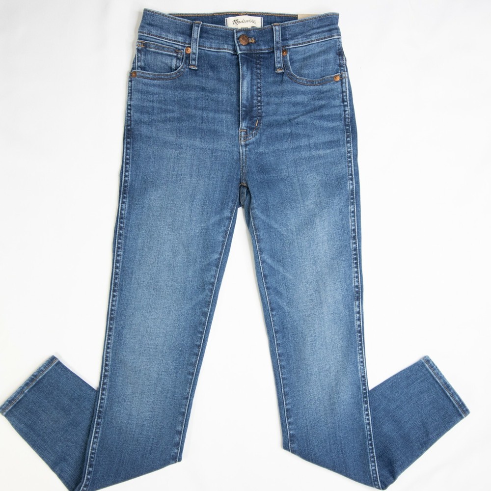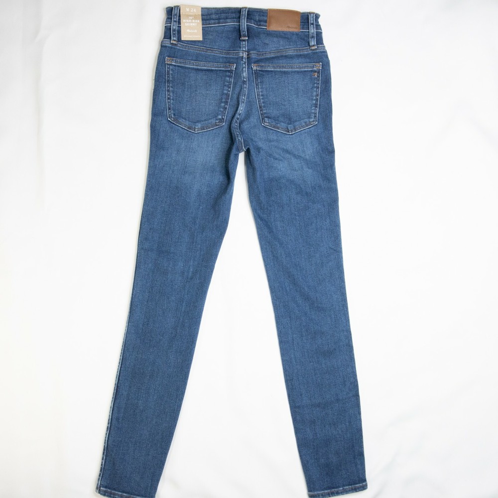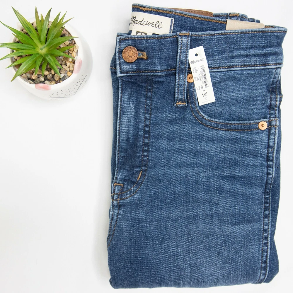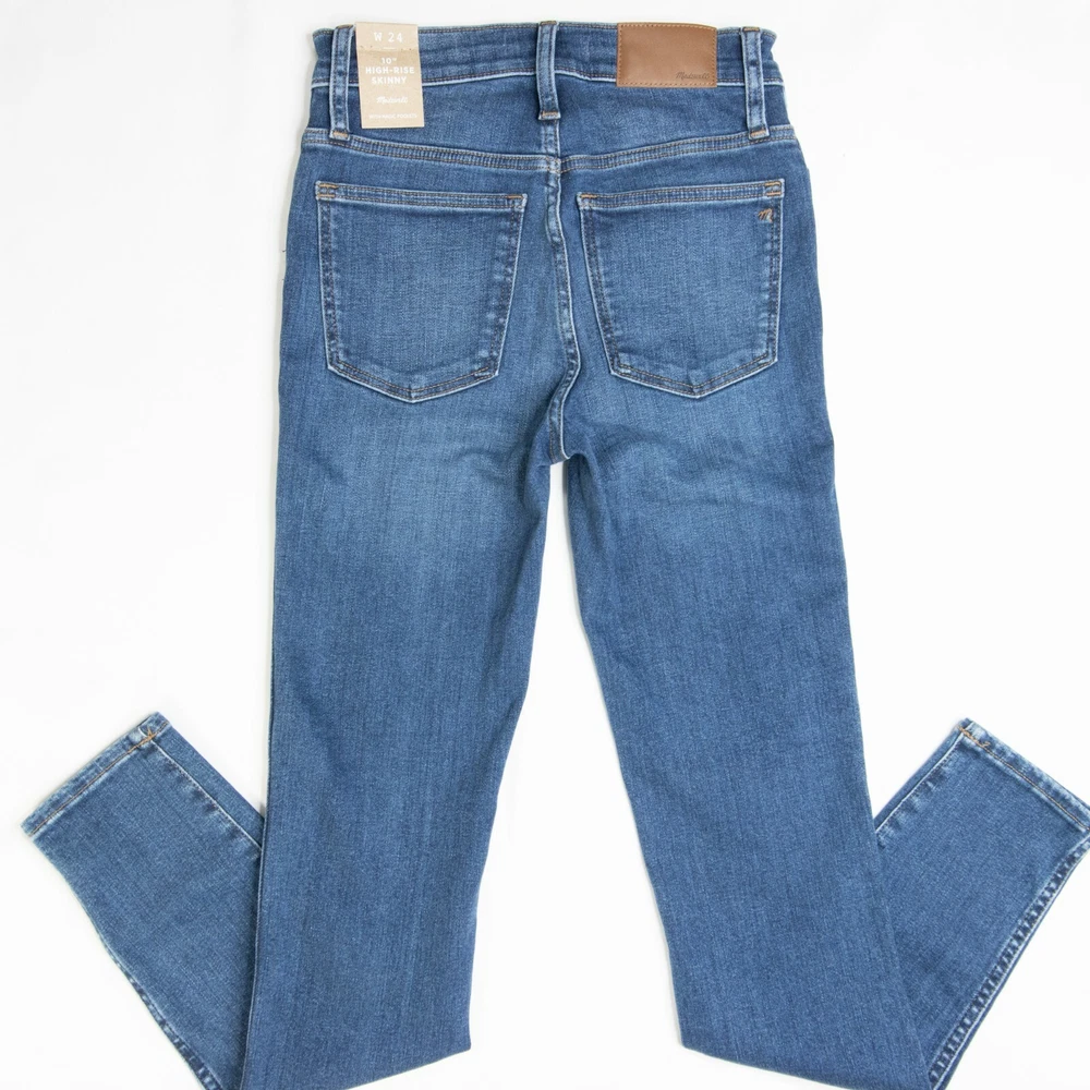 Madewell 10" High-Rise Skinny Jeans in Bradshaw Wash, size regular 24, MB909. Condition is "New with tags". Shipped with USPS Priority Mail. Super stretch, etra etra comfy. Made from premium holds-you-in denim, our 10" high-rise skinny jeans are lean and legs-for-days sexy. Approx. measurements: 12 3/4'' laid flat waist; 9.5" high rise, fitted through the hip and thigh, with a 9 3/4" skinny leg opening, 28" inseam. Premium 97% organic cotton/3% Eco-Smart® recycled elastane Candiani denim. Magic Pockets. Machine wash. Import. MB909.