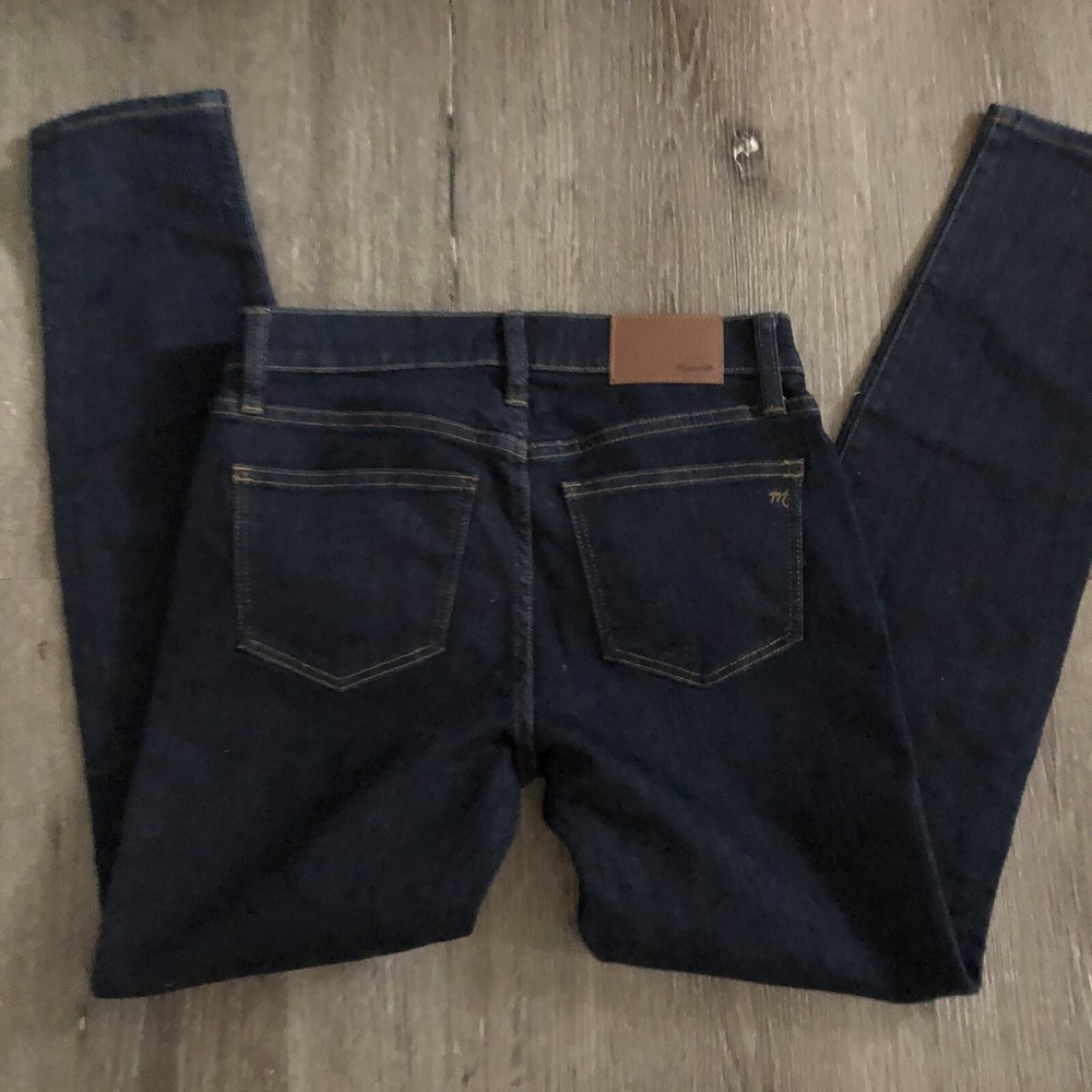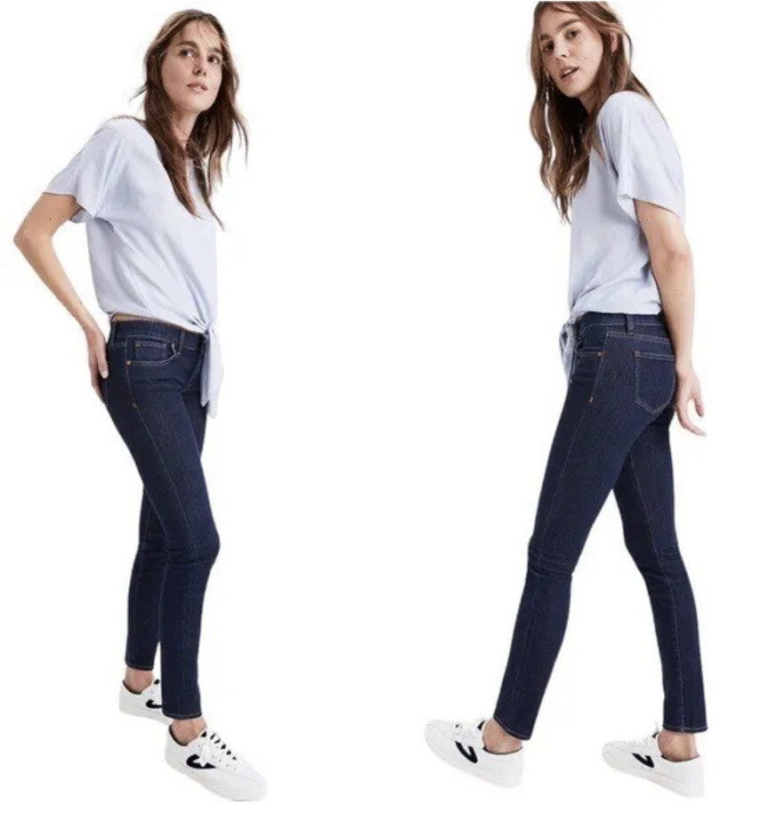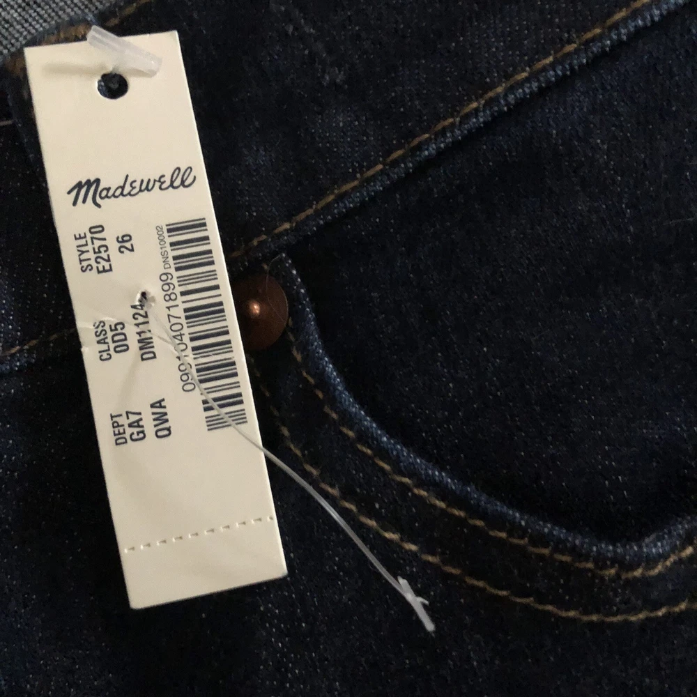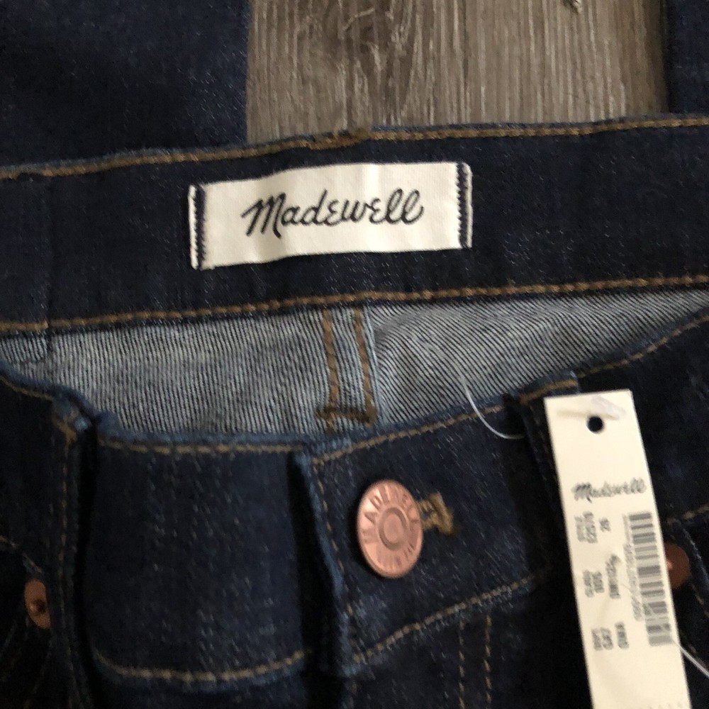 Madewell 8” Skinny E2570 Cotton Blend Quincy Wash Blue Denim Pants 26. New with tags Retail $128 Quincy wash Sits at hip Fitted throughout hip and thigh 14” waist flat 8” front rise 29” inseam