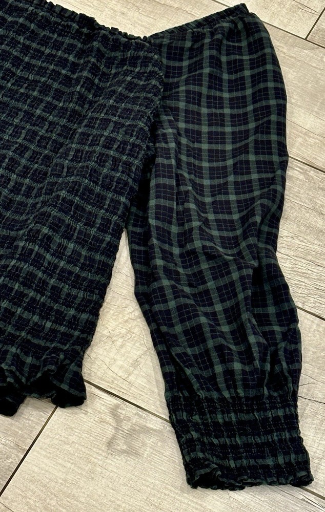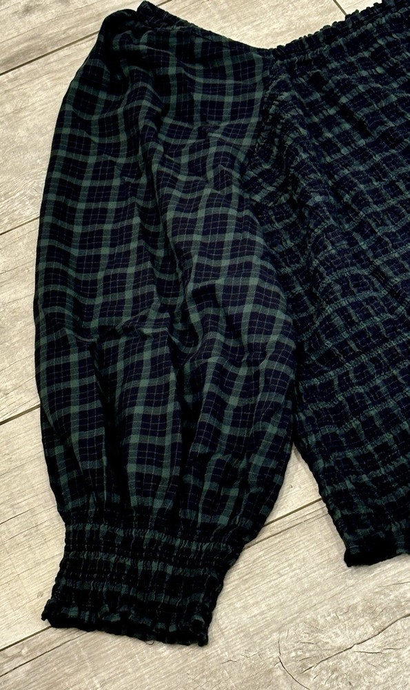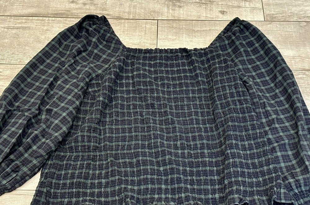 Madewell Lucie top in a blue/green plaid in a women's plus size 4x. Blouse is smocked front and back and has balloon sleeves with elastic cuffs. Material & care tags have been removed. Would be super cute with jeans and boot for that western/cowgirl look. Please see photos for measurements and condition. In excellent pre-owned condition-no rips, tears, holes or stains. Features: • Style Profile: Y2K, Beachy, Classic, Western, Cowgirl, Cottagcore, Country, Work, • Smocked front & back, Balloon sleeves with elastic cuffs, off shoulder, Comfy • Machine Washable • Chest: 46 in • Length: 27 in Measurements: - Previous washings may change the sizing written on the tag. - Please refer to the photos above for all measurements. - Please compare our measurements to that of one of your favorite garments. - Please note, item measurements are approximate . - Colors may differ slightly in shade from photos to actual item due variances caused by photography lighting and monitors. All items are bagged and sealed after being photographed, then stored in a smoke free environment to ensure the item is exactly the same as when photographed. We always carefully package and ship ASAP. Feel free to contact us with any questions. All items are washed per eBay standards and policies. We greatly appreciate your business! Please remember to leave positive feedback if you are happy with your purchase! Thanks for looking!