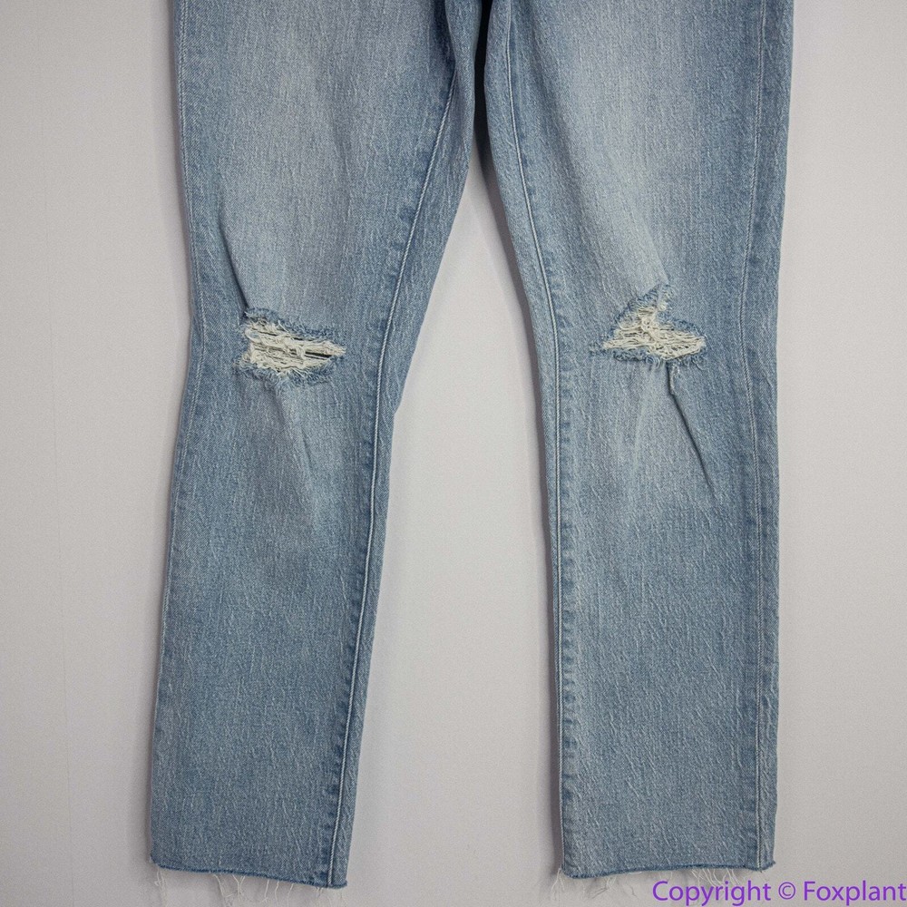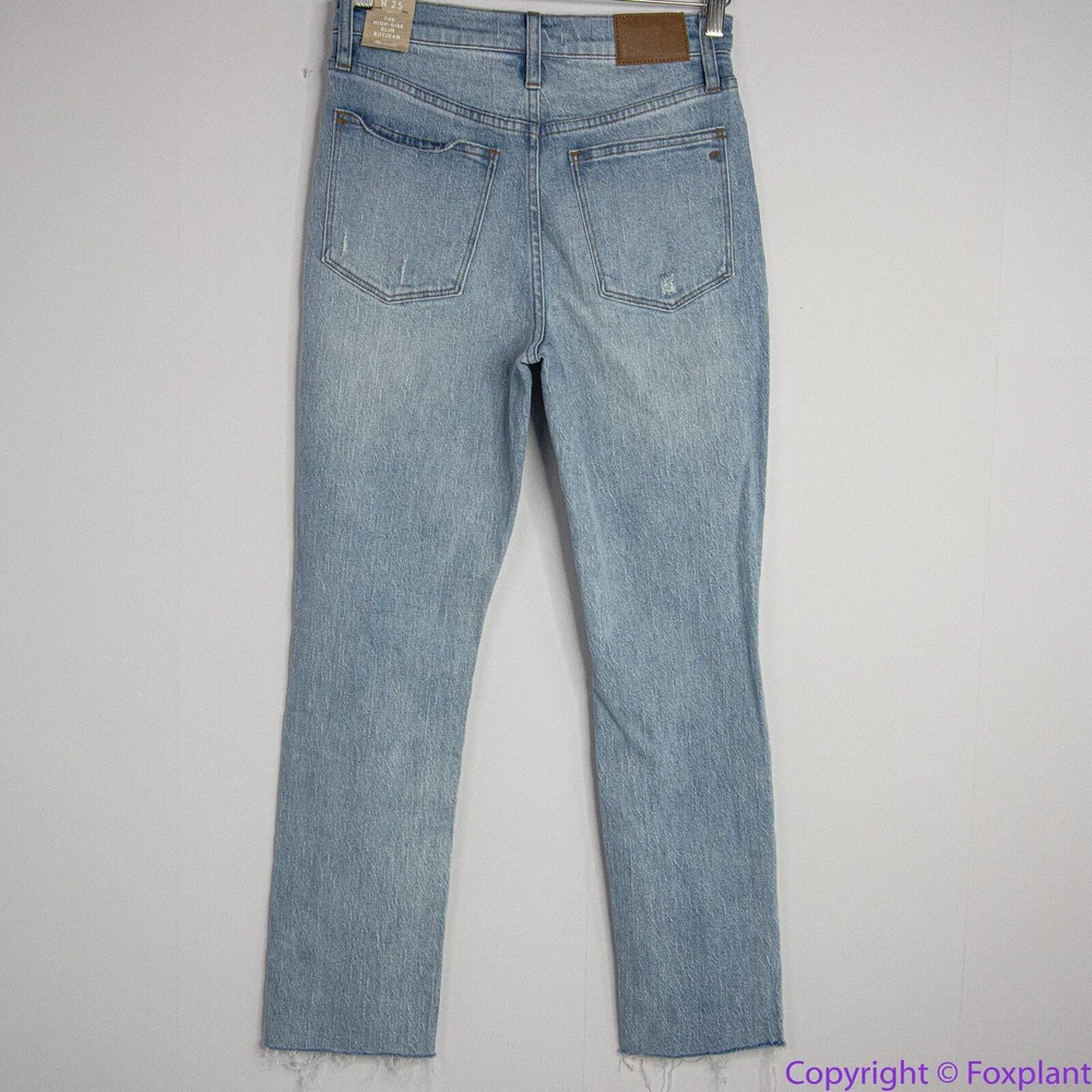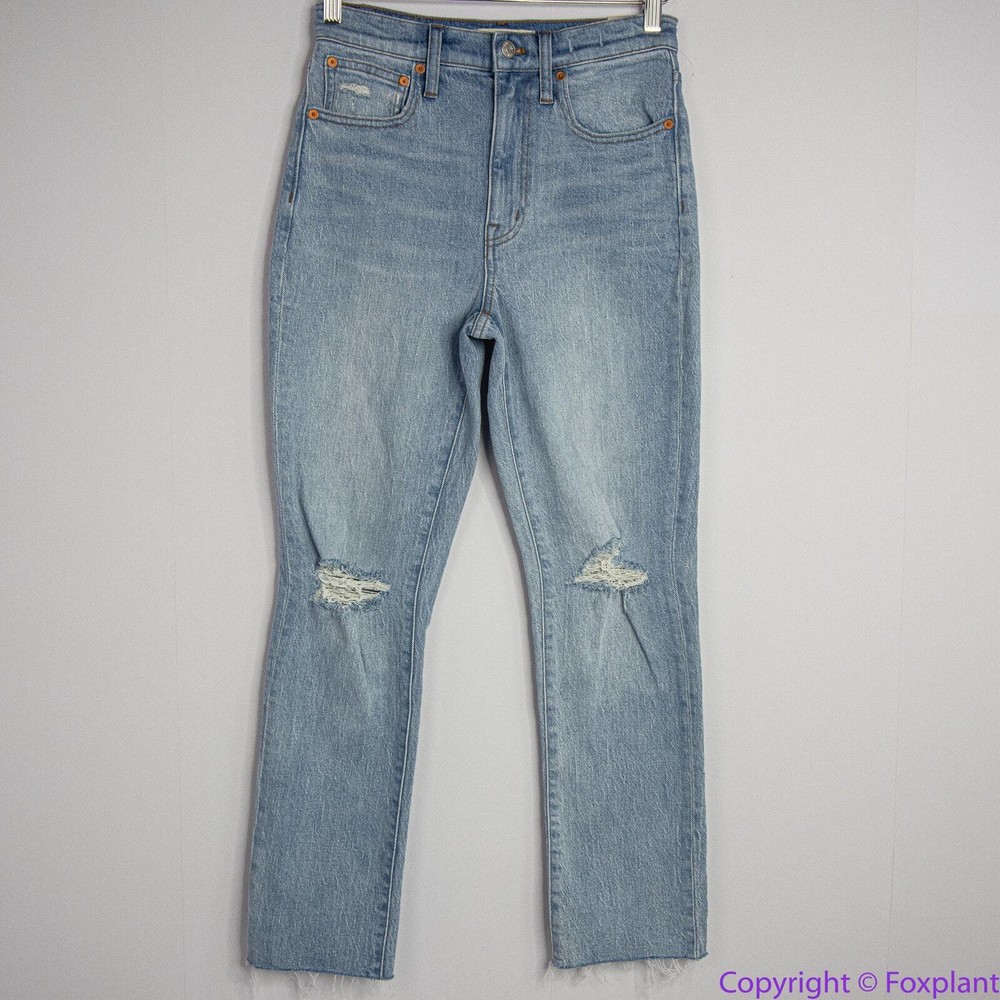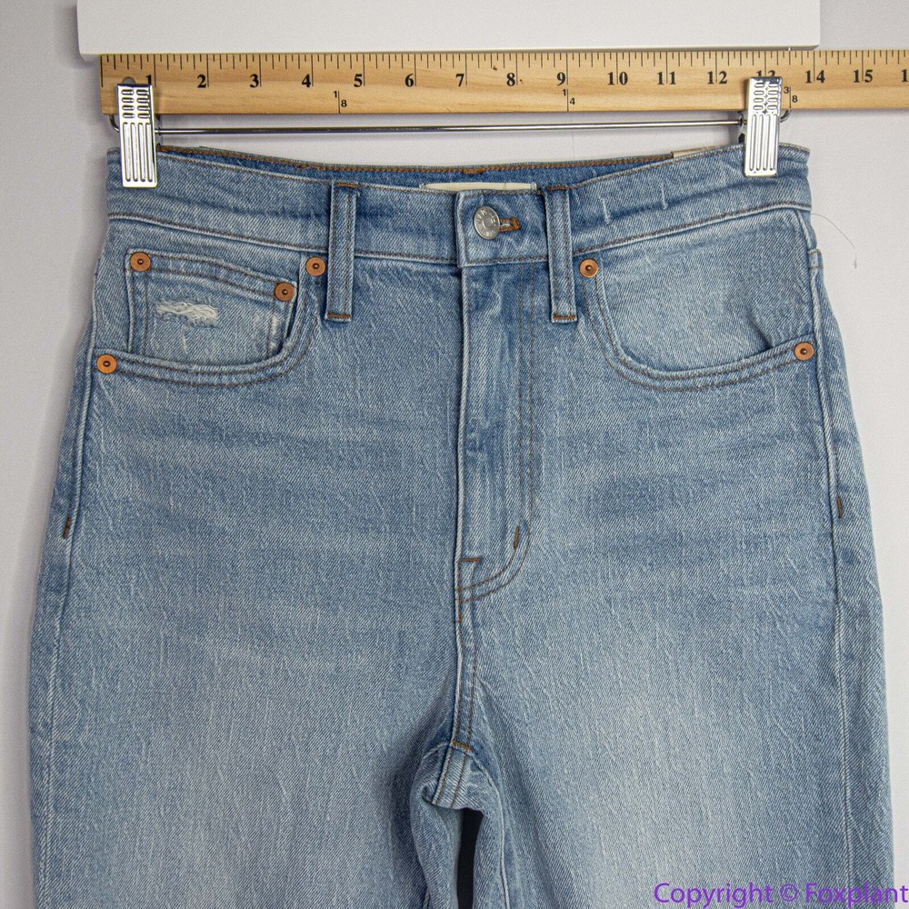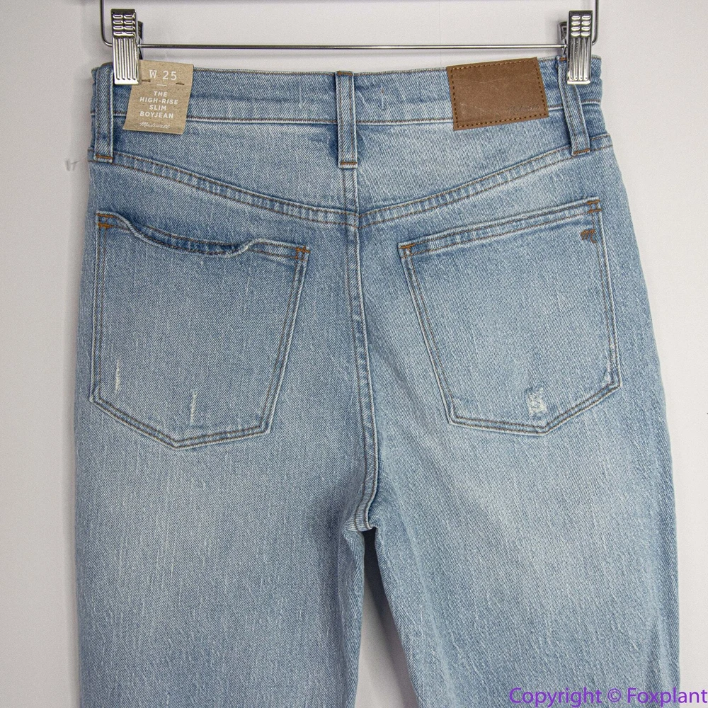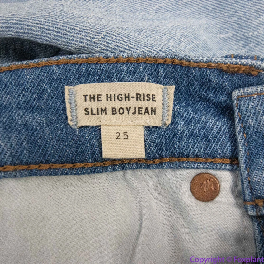 NEW Madewell The High-Rise Slim Boyjean in Prentice Wash: Ripped Edition, 25 comfort stretch The cut: Easy in the (high) waist, our signature boyfriend fit has a slim-but-still-relaxed leg (think a vintage men's jean cut for you). The fabric: Our best-selling Heritage Stretch organic cotton denim has an old-school look and a touch of give for a perfectly broken-in feel. 99% organic cotton/1% spandex Heritage Stretch denim. Raw hems, ripped knees. Machine wash. Item ND555 Measurements shown in photos are approximate and provided as a courtesy, not a guarantee of fit. Sometimes jean inseam measured by a yardstick from the crotch to the hem may be a little bit shorter than using a soft tape measuring along the seam. Excellent condition. No noticeable flaws or stains or damages. Smoke free, pet free home. Actual colors may vary due to differences in lightings and computer monitors.