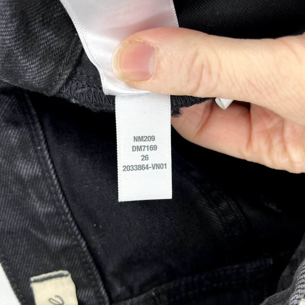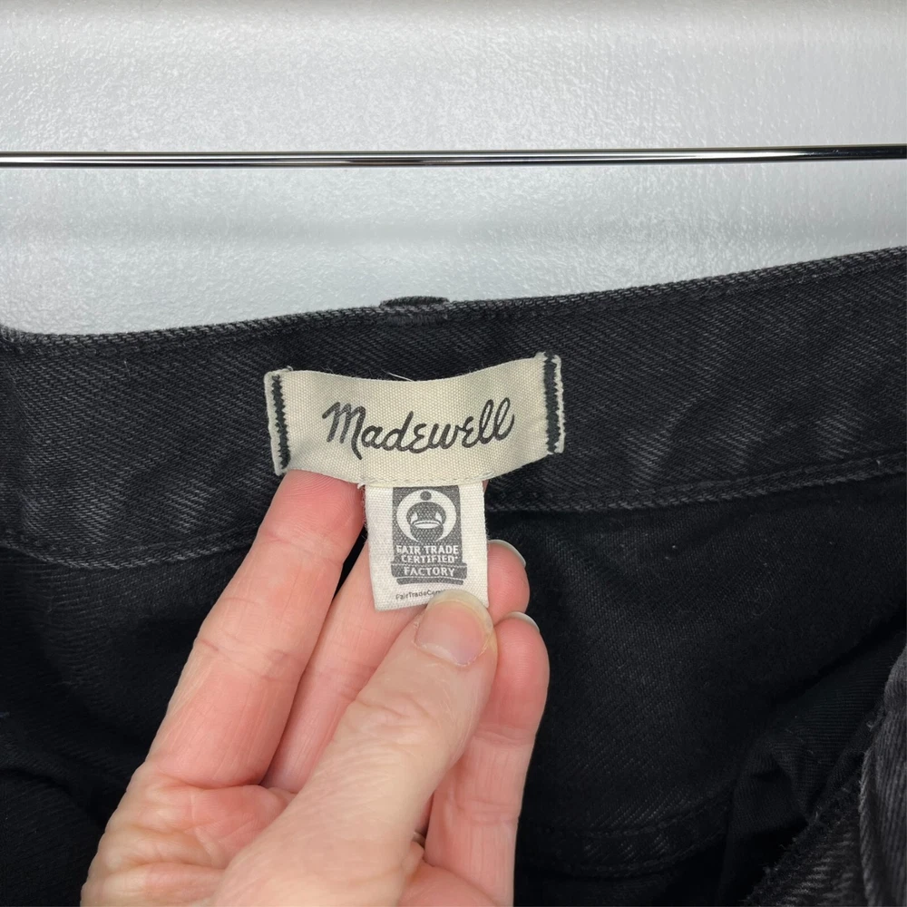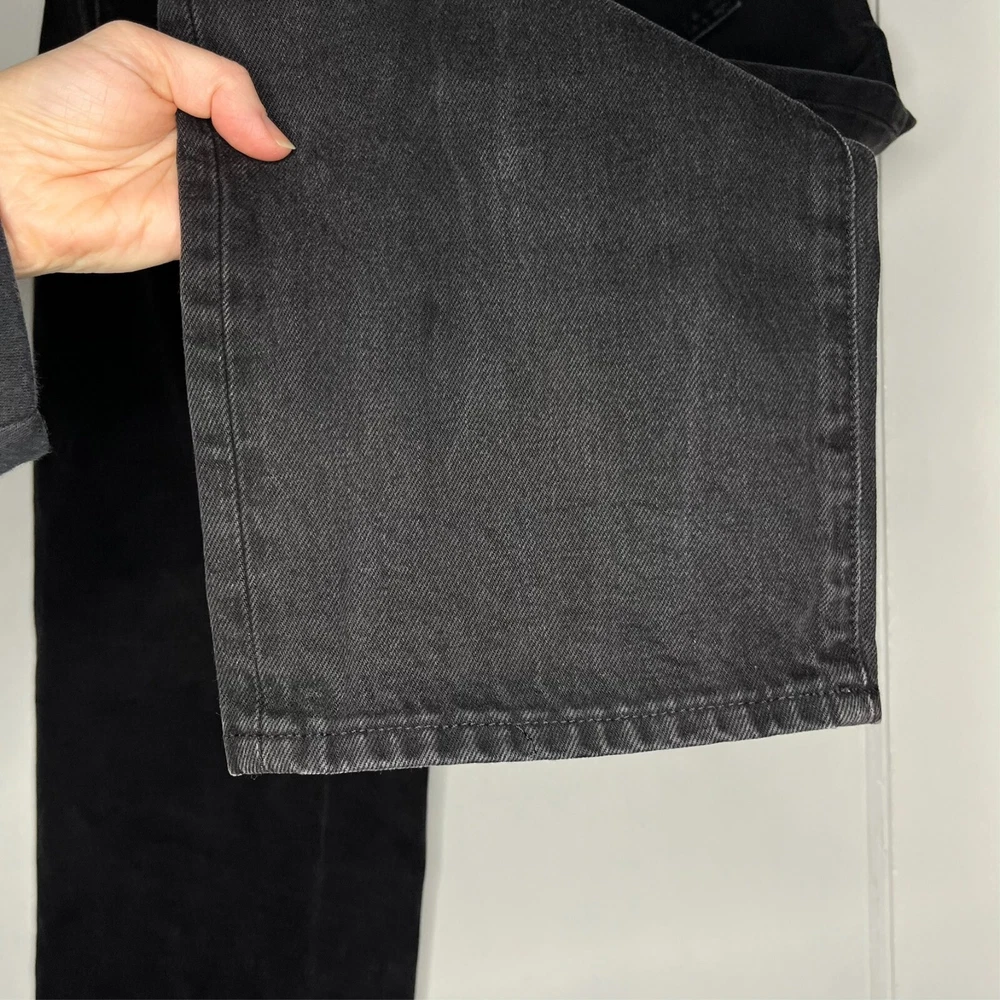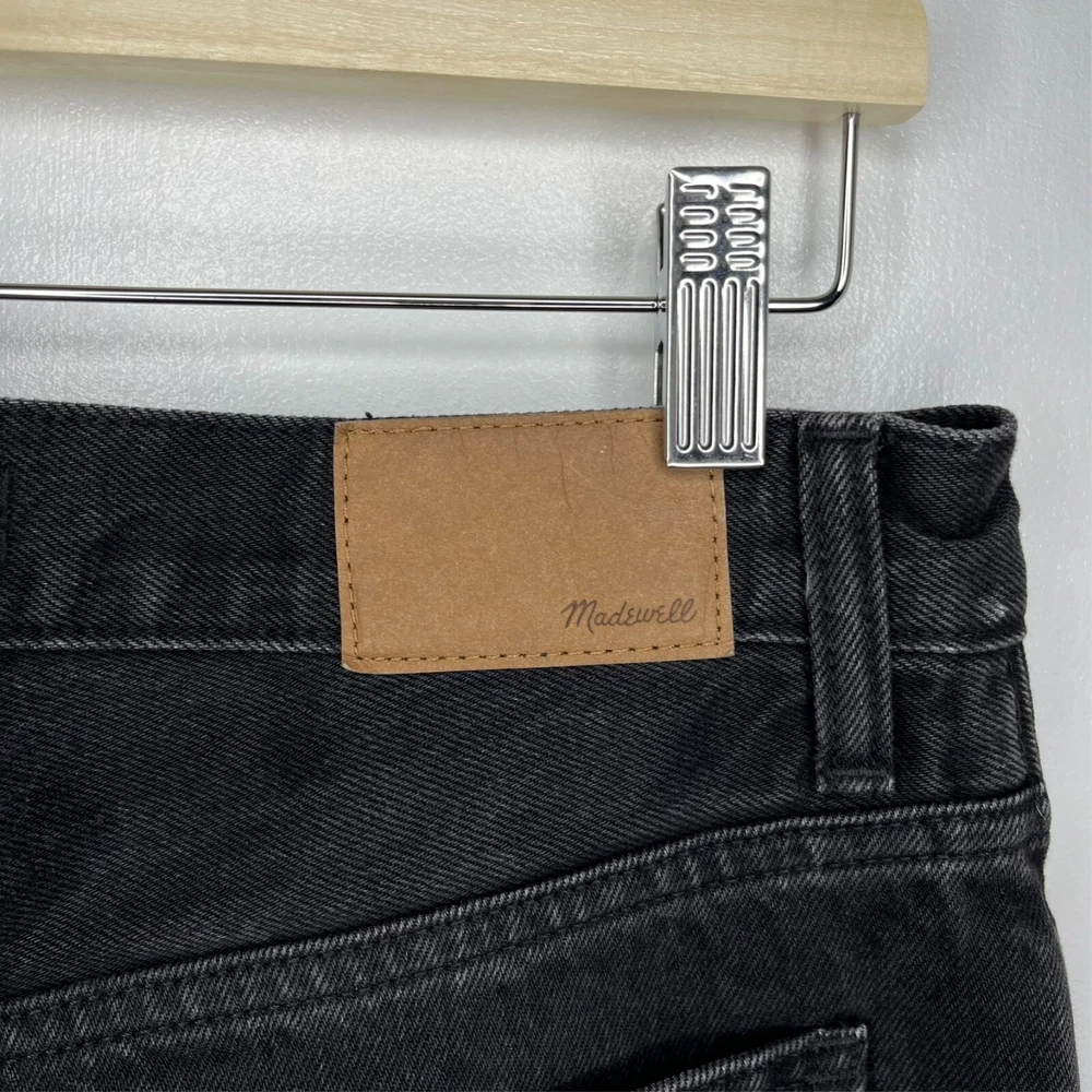 This is the Madewell Low Slung Straight jean in a size 26 and the Kent Wash faded black color. They are made of a loose woven 100% cotton denim fabric, feature a button fly and looser fit. Great Used Condition - Only flaw is 2 small stains near the right pocket (pictured). No other stains, holes, tears or other notable issues. Approximate Measurements: Length: 39" Rise: 11" Waist: 30" Inseam: 28" Leg Opening: 16" If you have any other questions or would like any additional measurements, please ask!