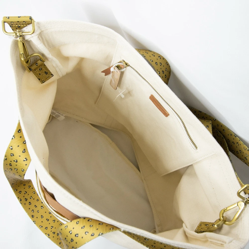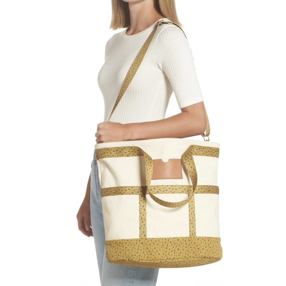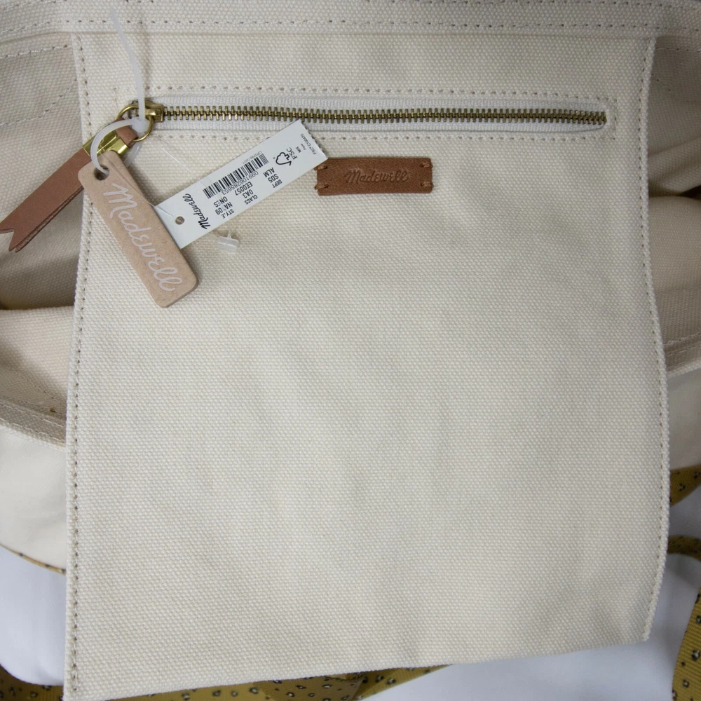 Madewell Canvas Camden Tote Bag in Mini Leopard, NWT Made of supersturdy cotton canvas with leopard print, this roomy colorblock tote has both schlep-friendly top handles and a removable crossbody strap. Big enough to hold all your go-to-the-park necessities, it has a secure zip pocket inside and slide compartments on the outside (the little leather one is made for a subway card) Canvas, color: Alabaster Lichen Multi Interior pockets, exterior pockets 8 1/4" handle drop 21 1/2" crossbody drop 14 1/4"H x 18"W at top, 14"W at base, 6.25'' depth. NA109