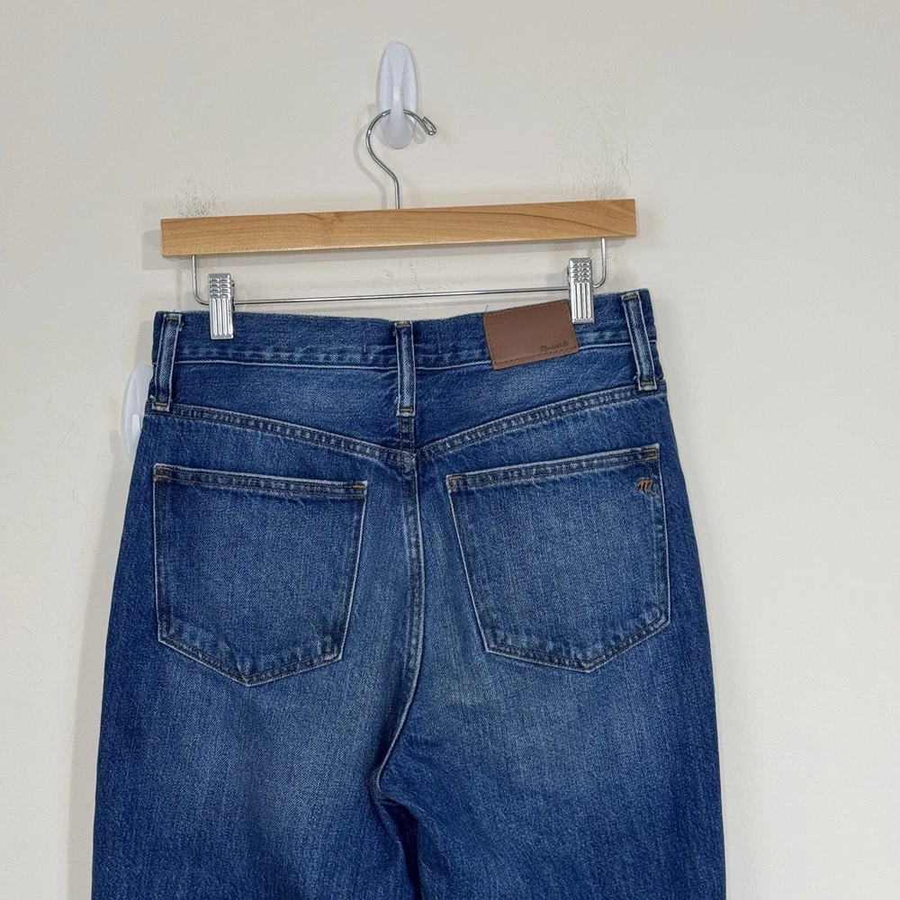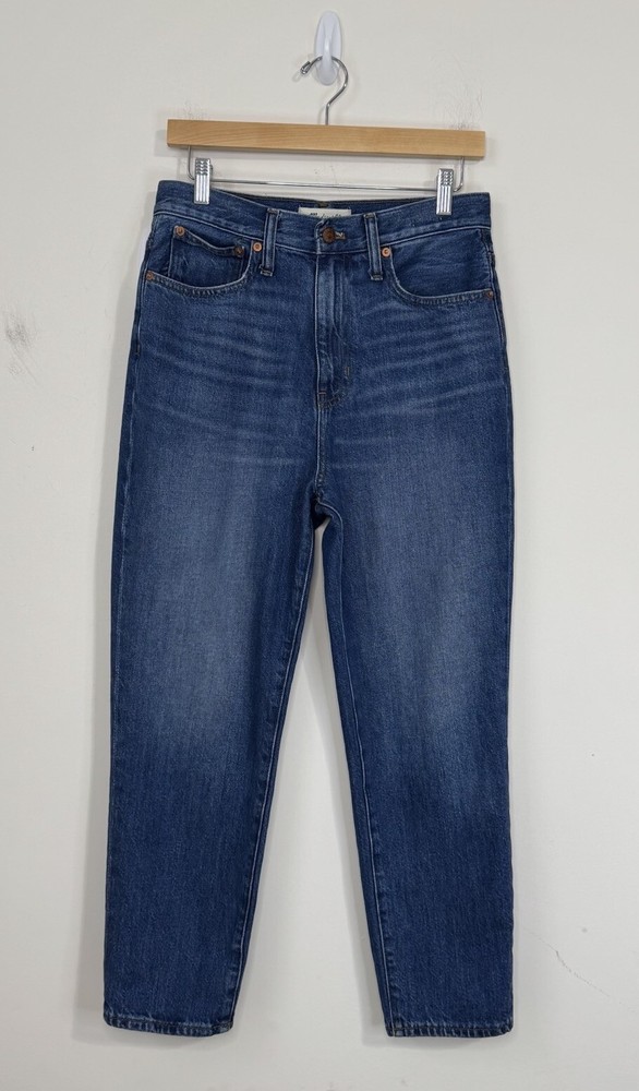 Condition: Pre-owned: Good used conditions. (Please see pictures for exact conditions) Brand: Madewell Style: The Mom Jean Size: 27 Color: Stratfield Blue Material: 100% Cotton Waist: Approx. 14.0” Hips: Approx. 17.5” Front Rise: Approx. 13.0” Inseam: Approx. 26.0” Leg Opening: Approx. 6.0” Features: -Zip and button closure -High rise with slight slouch, roomy through hip and thigh -Tapered leg -Medium wash -5 pocket design -Machine wash Please see measurements and pictures to be sure of fit. Size may change from previous washing. Waist is measured from front left side seam to front right side seam. Rise is measured from the end of the crotch seam to the middle front waistband. Inseam is measured from the end of the crotch area to the end of the leg opening. All measurements are approximate and measured flat across.