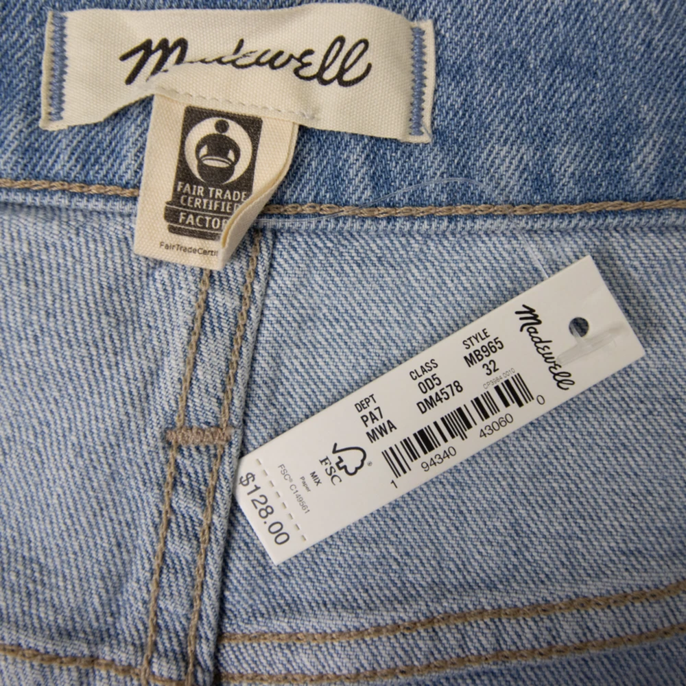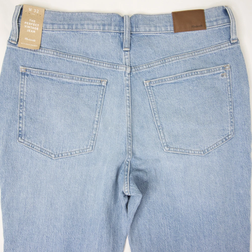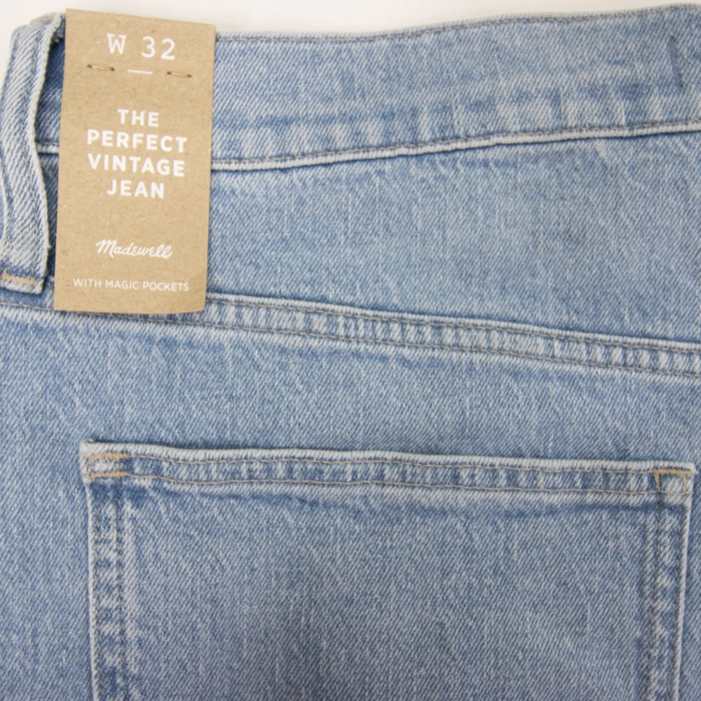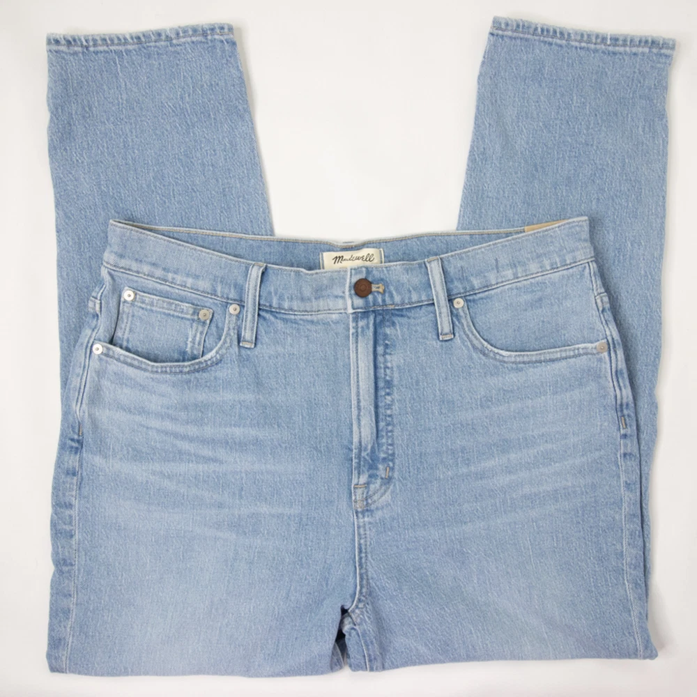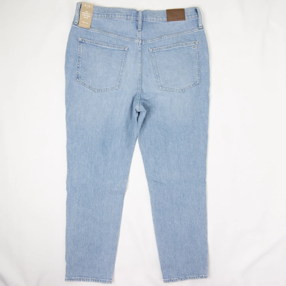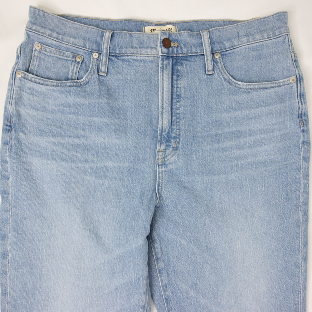 Straight leg, Perfect vintage, high waist, light blue jeans in Marian wash by Madewell, NWT, size 32. With their waist-accentuating high rise and tapered legs, these are mom jeans (if your mom was a '90s supermodel). • Approx. laid flat measurements: • Waist: 18 in • Front rise: 13 in • Inseam: 26 3/4 in • Leg opening: 7 in • • Zip fly with button closure • Five-pocket style • 99% cotton, 1% elastane • Machine wash, tumble dry • Imported MB965