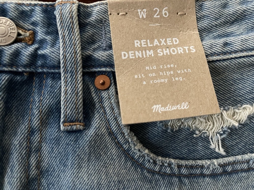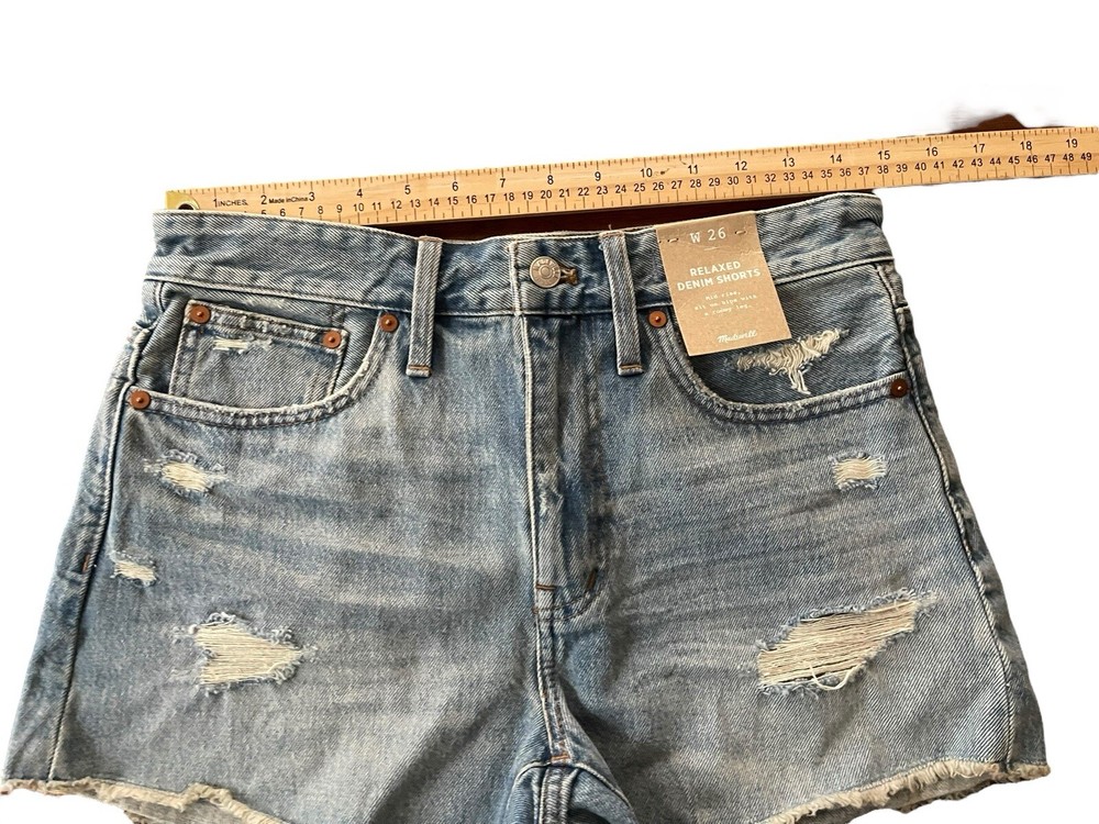 Madewell Relaxed Denim Women's Size 26 Distressed Mid Rise Jean Shorts NWT. Condition is New with tags. Shipped with USPS Ground Advantage.