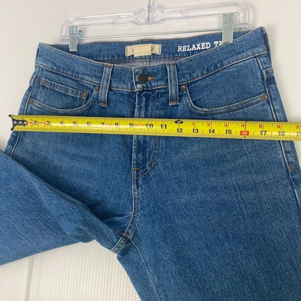 Madewell Women's Size 31/30 Blue Jean Relaxed Taper High Rise Pockets Stretch comes from a smoke and pet free place, you can contact us if you have questions. Please note that some photos may not show accurate shades. Photos are of the actual item you will receive. See photos for details. Excellent Condition. Please see photos for measurements