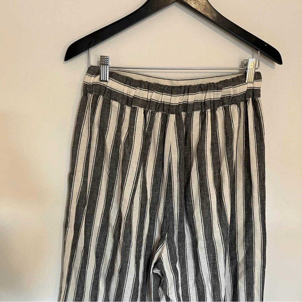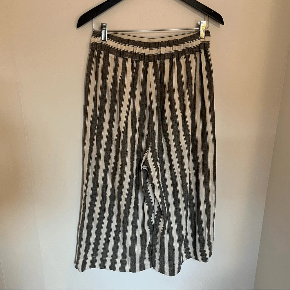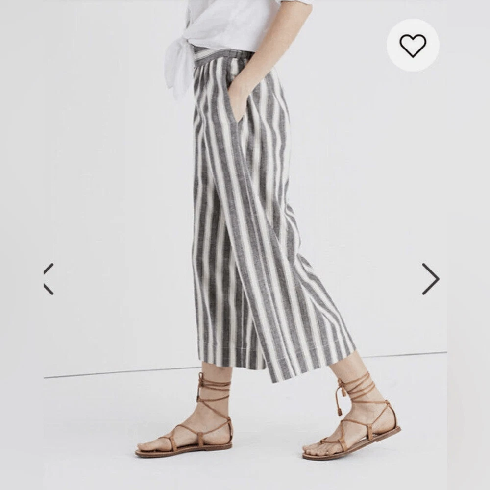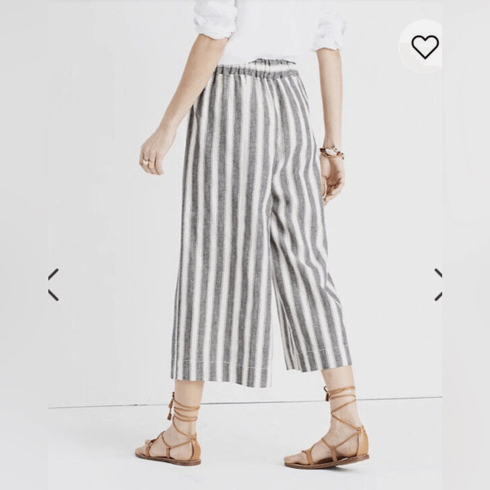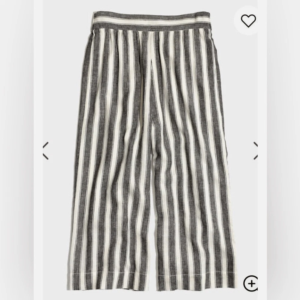 Madewell huston pull-on crop pants in stripe NEW with tags Size small Swingy wide-leg pants in a drapey crepe. Polished enough to... wear to work, with a pull-on waistband to make them pajama-pants-level comfy (score, in other words). Elastic waistband 55% linen 45% cotton G2030