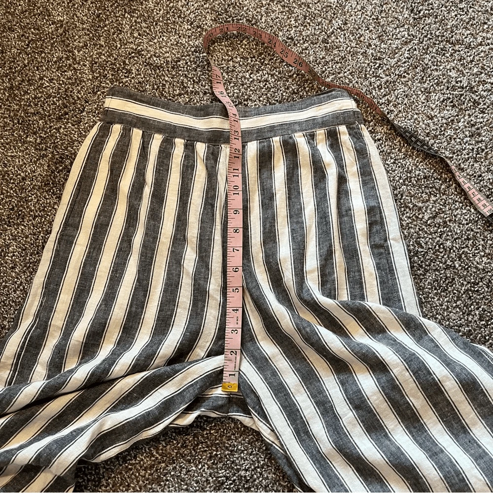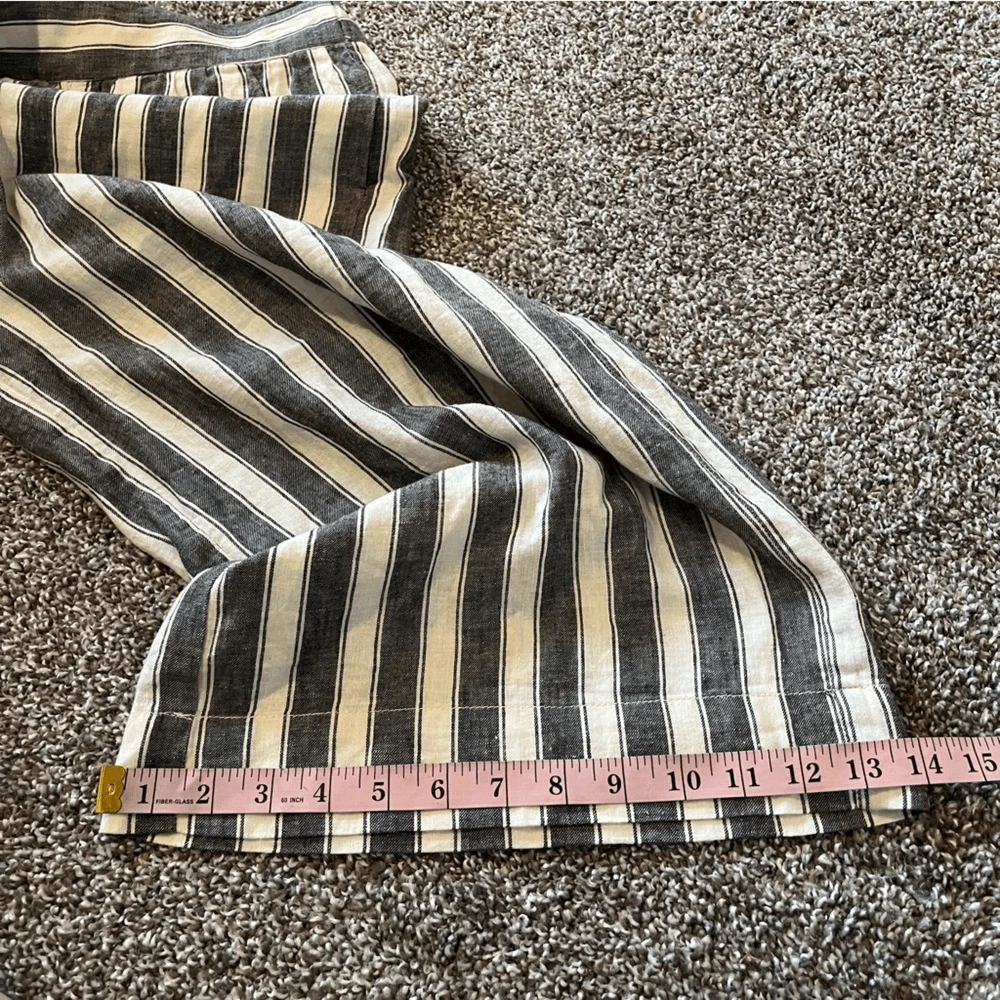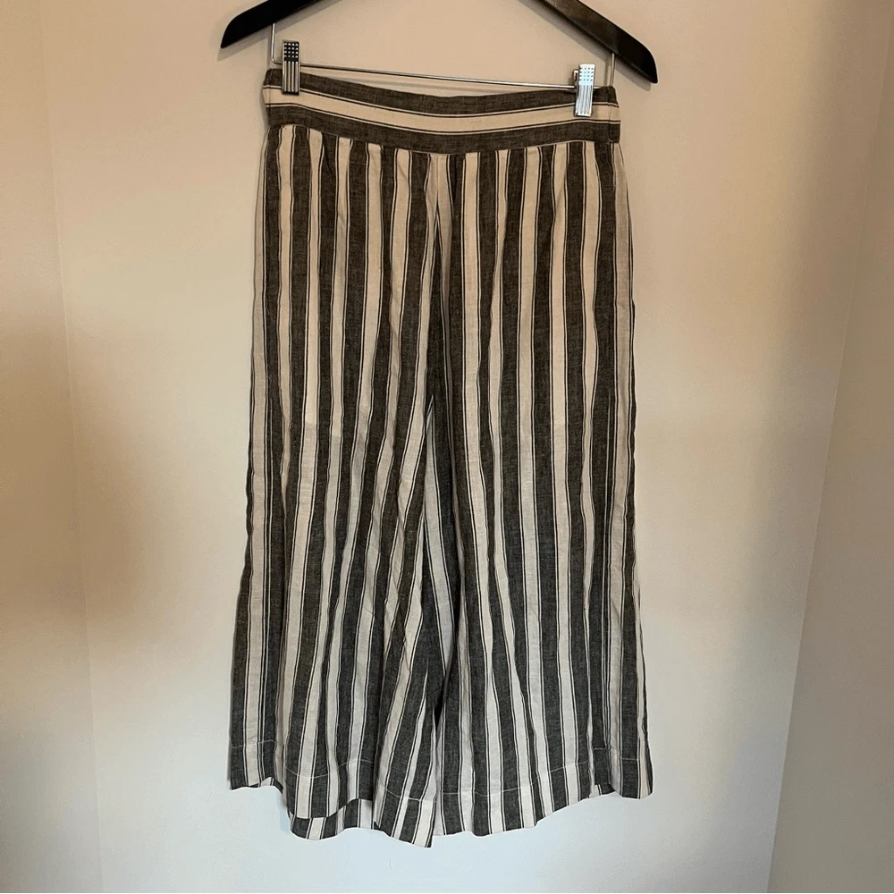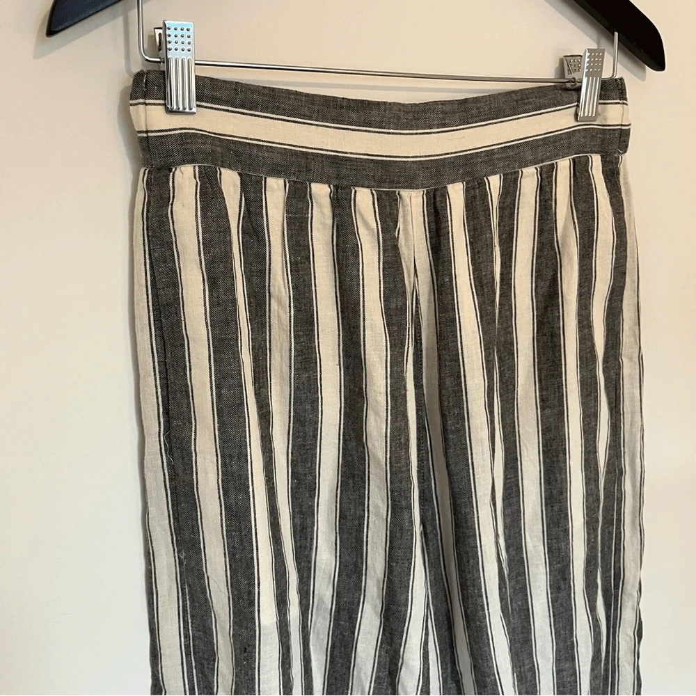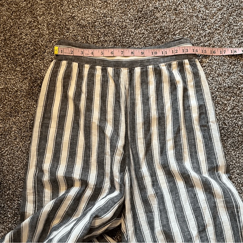 Madewell huston pull-on crop pants in stripe NEW with tags Size small Swingy wide-leg pants in a drapey crepe. Polished enough to... wear to work, with a pull-on waistband to make them pajama-pants-level comfy (score, in other words). Elastic waistband 55% linen 45% cotton G2030