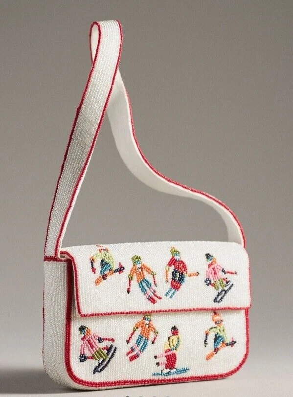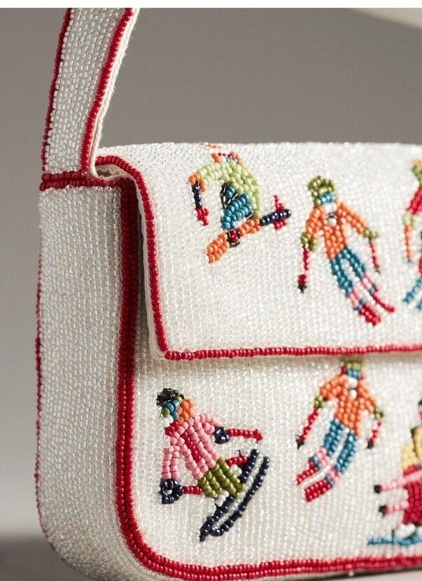 Glass beads; cotton lining One inner slip pocket Magnetic closure Imported 5"H, 8"W, 1.75"D 9.5" strap drop