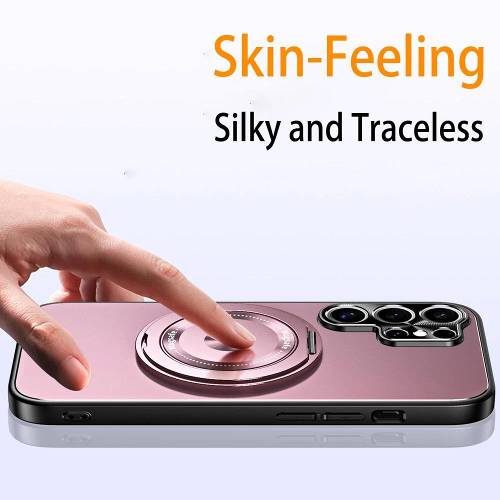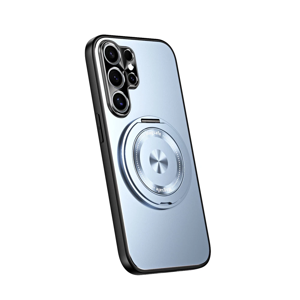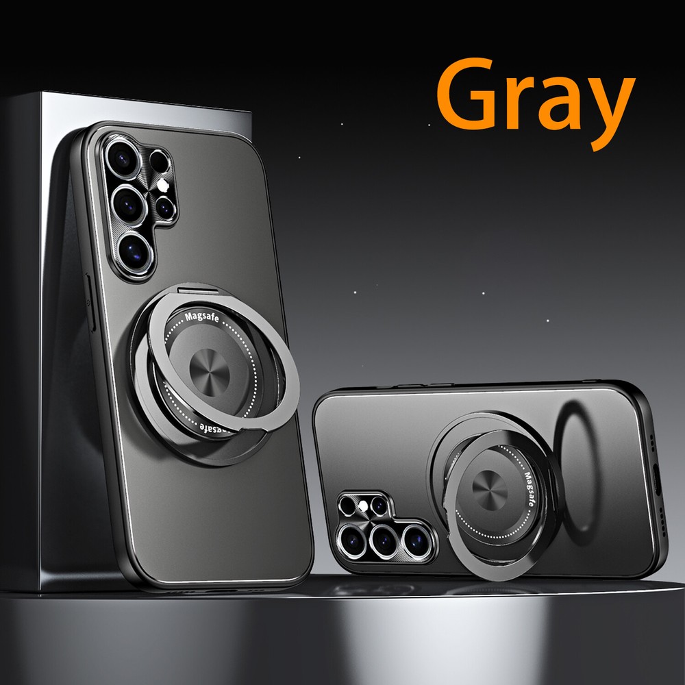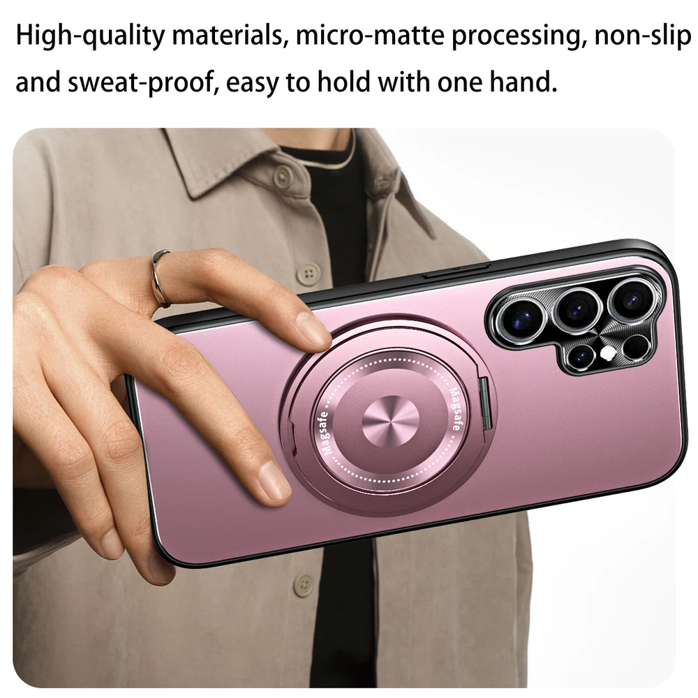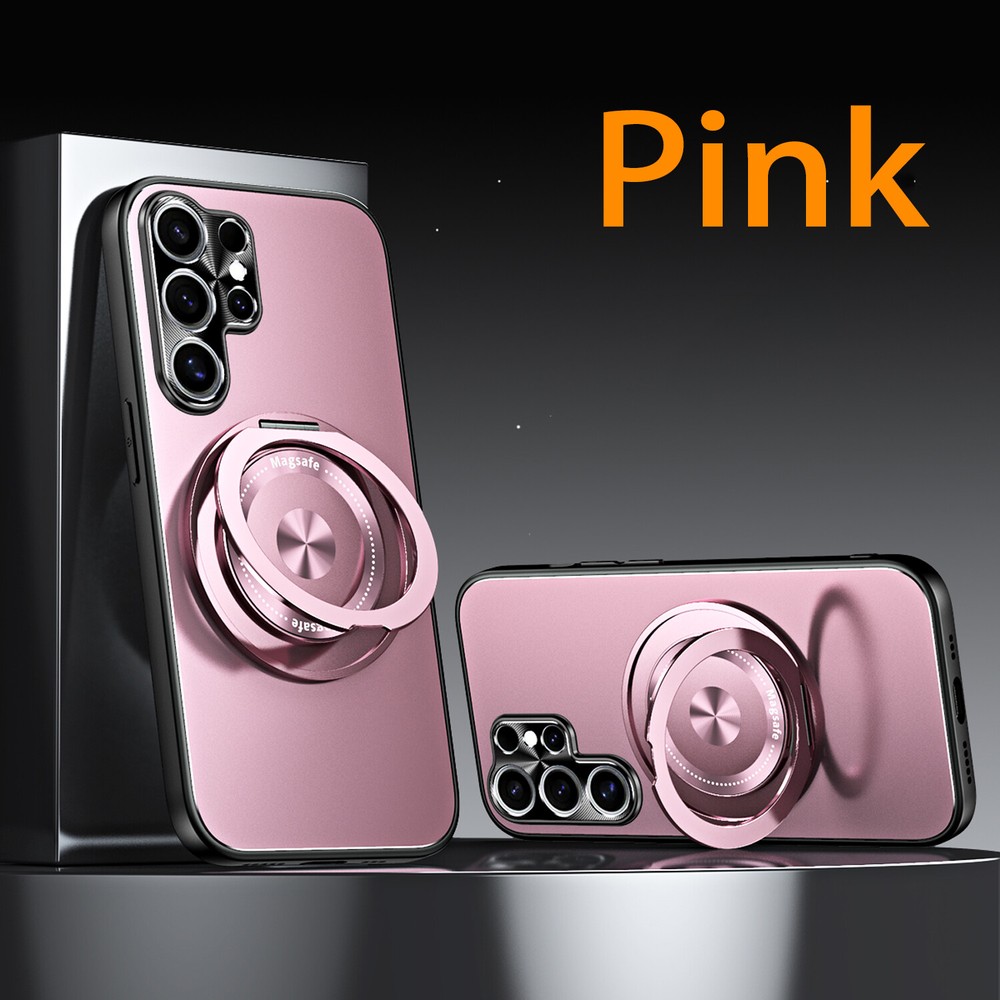 Mag Safe Magnetic Case For Samsung Galaxy S24 S23 Ultra Plating Ring Stand Cover Product Features: MagSafe Compatibility & Magnetic Car Mount Support: this hybrid rugged case supports MagSafe charging and is compatible with magnetic car mounts, ensuring convenience and versatility. PC + TPU Frosted Plating Design: Crafted with a frosted PC and TPU construction, this case offers a sleek yet rugged look while providing reliable protection against drops, impacts, and scratches. 360° Rotatable Ring Stand: Equipped with a 360° rotatable ring stand, this case enables hands-free viewing and can double as a secure grip for enhanced usability and portability. Lens All-Inclusive Protection: The all-inclusive lens protection design safeguards your camera from scratches and daily wear, ensuring crystal-clear photo quality at all times. Shockproof Rugged Build: Built with durable materials, this case absorbs shocks and impacts to keep your phone protected while maintaining a lightweight and slim profile.