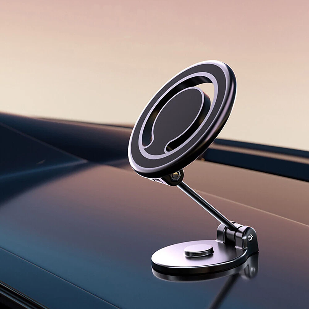 This magnetic car phone holder is a game-changer! Its compact, foldable design keeps my view clear while driving, and the strong MagSafe grip holds my iPhone securely. I love how easily it adjusts to any angle—perfect for navigation in both portrait and landscape mode. The mount stays firm even on bumpy roads, and the minimalist look blends seamlessly with my car’s interior. Super convenient and reliable!