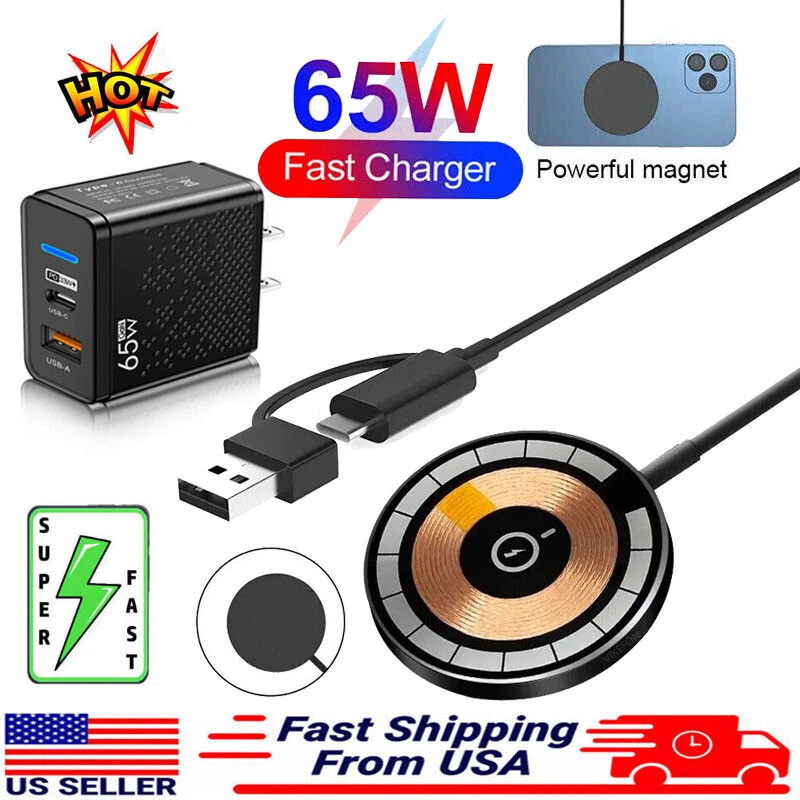 Item description from the seller 15W [Transparent design] The first transparent magnetic wireless charger, thin and cybernetic design, glass cover and aluminum edge. The perfect accessory for MagSafe standard iPhone [Magnetic design is firmly fixed] Silicone surface, aluminum alloy frame, ultra-fine design. Just simply grab and move to keep your phone safe, [Compatible with iPhone 16, iPhone 15, iPhone 14, iPhone 13 and iPhone 12 series] MagSafe Mobile Charger Wireless Magnetic Holder is specially designed for iPhone 12 series, iPhone 13 series and iPhone 14 series,. Compatible with iPhone 14/14 Max/14Pro/14Pro Max/13/iPhone 13 Pro/iPhone 13 Pro/iPhone 13 Mini/iPhone 12 Pro/iPhone 12 Pro/iPhone 12 Pro Max/iPhone 12 Mini, incompatible with iPhone 11 Pro Max or previous models with magnetic jackets. [Other wireless charging phones are also available]Such as Samsung S6 / S7 / Edge/S8 / S9 and S10 / S20 / S21 / S22 / Plus/Ultra/Note/Ultra / 20 Fold3/4/4/5 Flip3 / g, Xiaomi, Sony, Google, OPPO and so on support wireless charging mobile phone installation of our products inside a MagSafe magnetic suction ring can be used normally. Pay attention to the installation position should be aligned with the wireless charging position! [Improved ventilation component] It is easy to navigate through flexible adjustment on the ventilation bracket. Easy to 65W Fast Quick Charge PD Type-C USB QC 3.0 Wall Charger Adapter US Plug Description: Feature Combines one QC 3.0 and one PD 65W Type-C charging ports in a single wall charger. So whatever your device, we will take it from flat to full faster than ever before 3.0 Technology: 4 times faster than normal charger, the QC 3.0 port is capable of charging compatible devices up to 80% in 35 minutes. It also compatible with QC2.0 and 1.0 Technology AC100-240V and 50/60 HZ input, compatible with all devices using USB cable. This is world-class charging that knows no boundaries Compact small size body, easy to carry. High temperature resistant shell,safe to use. Travel Design: Mini size, convenient to carry, suitable for home, travel, office, etc. Product Information Name: QC 3.0-3A+PD 65W Type-C LED Charger Material: Fire-Resistant PC Gram Weight: 52g(US) Model: US/ PLUG Color: Black, White Input: AC100-240V, 50-60Hz QC 3.0: 5V/3A; 9V/2.4A; 12V/1.8A Package Included Charger*1