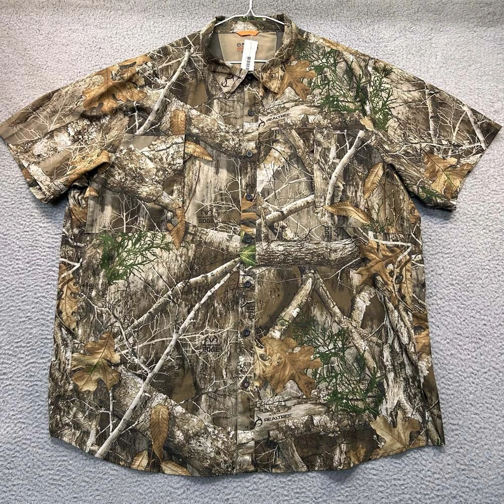 Occasion: Casual Material: Polyester Blend Sleeve Length: Short Sleeve Color: Multicolor Product Line: Hunt Gear Vintage: No Size Type: Regular Closure: Button Size: 3XL Garment Care: Machine Washable Department: Mens Type: Button-Up Fabric Type: Woven Pattern: Camouflage Brand: Magellan