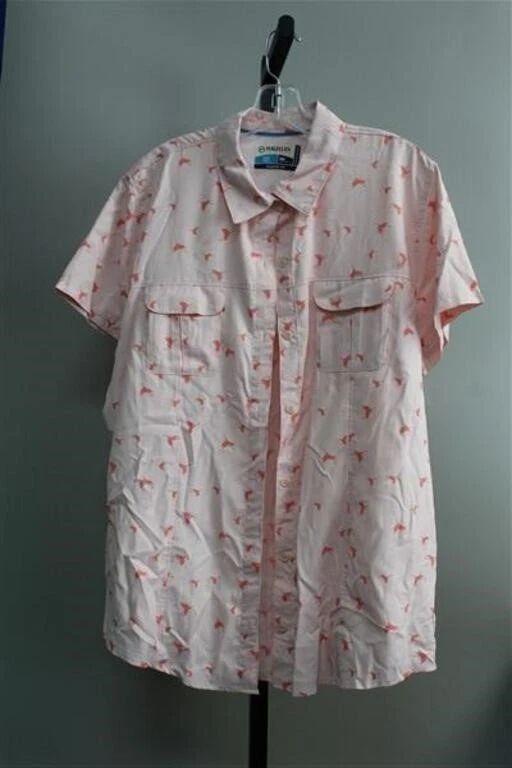 Get ready for your next outdoor adventure with this Magellan Outdoors Fish Gear button-up shirt. Designed for men, this shirt comes in a vibrant pink color with a bird theme, making it the perfect addition to your casual button-down shirt collection. The shirt is made from high-quality materials and features short sleeves, a button closure, and is available in size 2XL. Whether you're hiking, fishing, or bird watching, this shirt is sure to keep you comfortable and stylish. It's a great choice for those who love to explore the great outdoors. Don't miss out on this opportunity to add a stylish touch to your wardrobe.