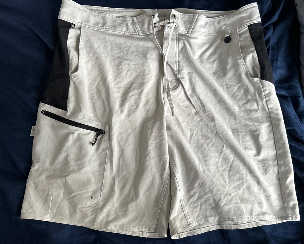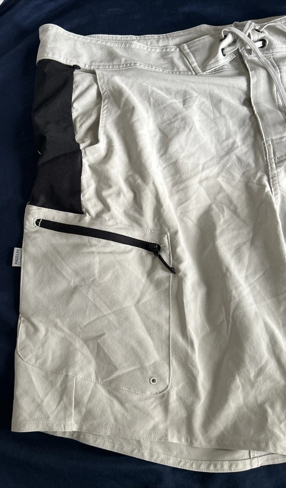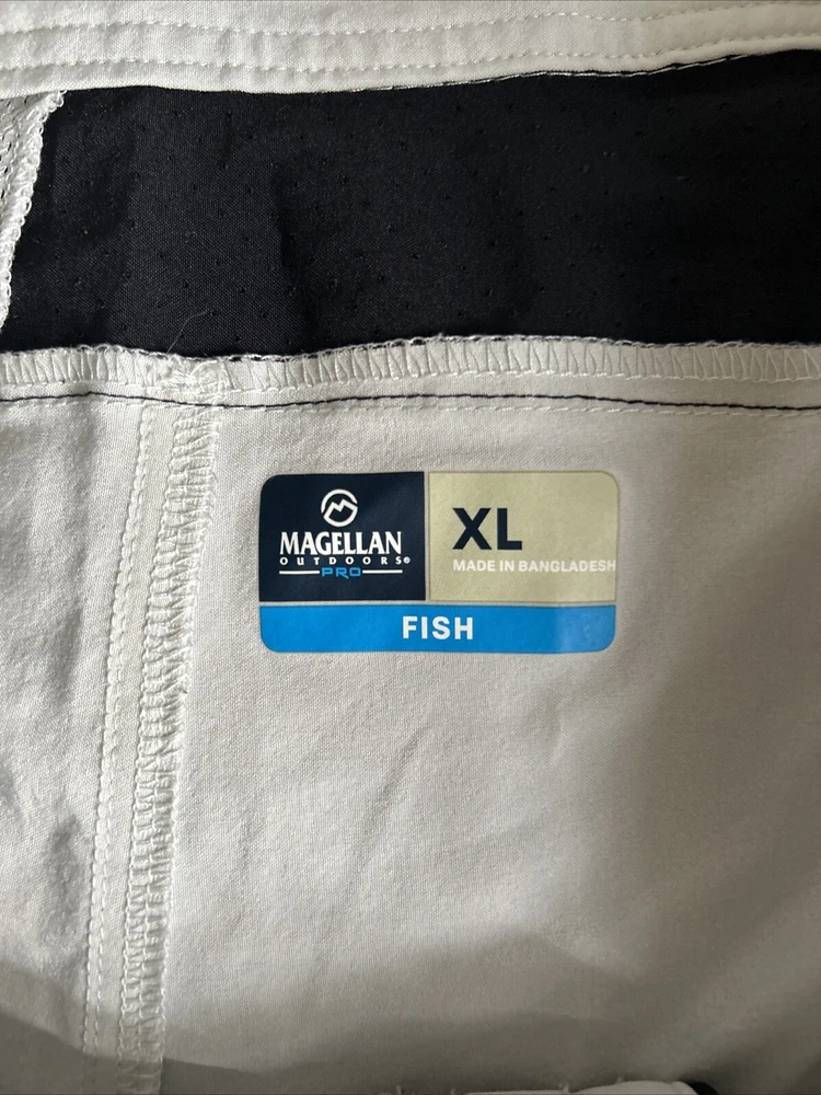 These Magellan Outdoors Pro Angler Shorts are perfect for any outdoor activity, whether you're fishing or hiking. They feature a drawstring closure and cargo pockets, making them both comfortable and functional. The shorts are made of a lightweight, machine washable polyester and spandex blend, with a solid gray color and black accents. The XL size and 20.5” waist size ensure a comfortable fit, while the 9.5” inseam and cargo style provide ample storage space. Get ready to explore the great outdoors in style with these Magellan Outdoors Pro Angler Shorts! Message me with any questions and thanks for looking