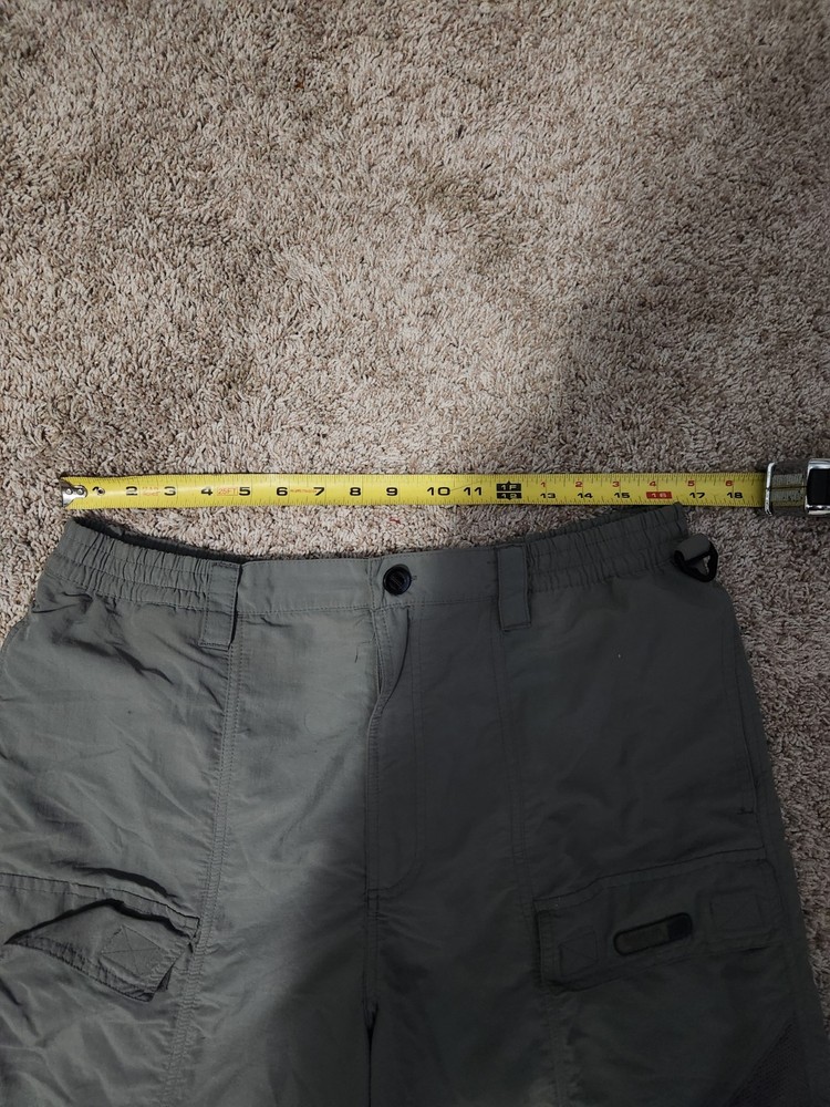 Leg Style: Straight Department: Men Pattern: Solid Personalize: No Accents: Zipper, Zipper at ankles, Pockets, Zip Off Pants Type: Pants Style: Cargo Handmade: No Garment Care: Machine Washable Fabric Type: Nylon Inseam: 28 in Theme: Fish Fit: Outdoor Sports Brand: Magellan Leg Opening: 9” Pocket Type: 6 pockets, Cargo pockets Features: Convertible Size Type: Regular Front Type: Flat Front Closure: Zip Occasion: Casual, Travel, Workwear Size: L Color: Brown Waist Size: 30 in Material: Shell - 100% Nylon, Mesh - 100% Poly Vintage: No Season: Fall, Spring, Summer Model: Magellan Sports Product Line: Magellan Outdoor Rise: 12”