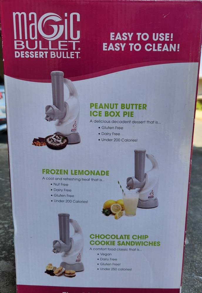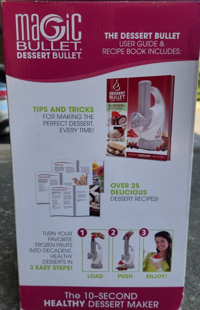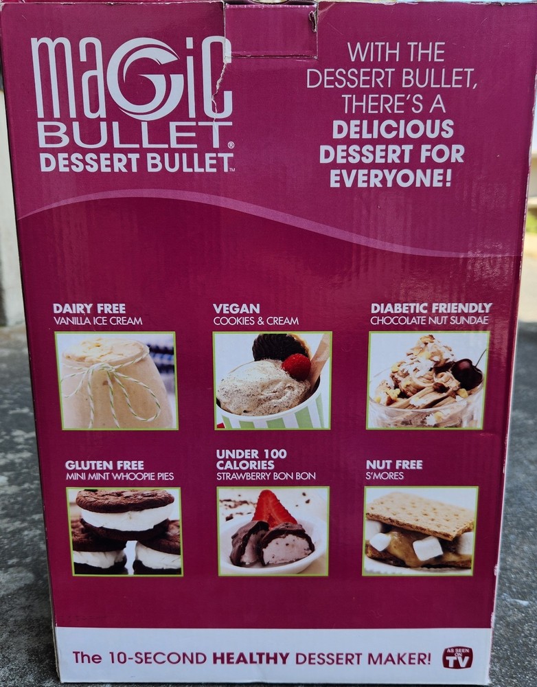 The Magic Bullet Dessert Bullet Blender is a compact and efficient countertop blender perfect for creating delicious desserts. With its white color and sleek design, the Magic Bullet model is easy to use and blends ingredients in just 10 seconds. This bullet blender includes all the necessary components to blend and mix your favorite desserts, making it a versatile and convenient addition to any kitchen. Enjoy creating tasty treats with this innovative small kitchen appliance from Magic Bullet. User guide/Recipe booklet not included.