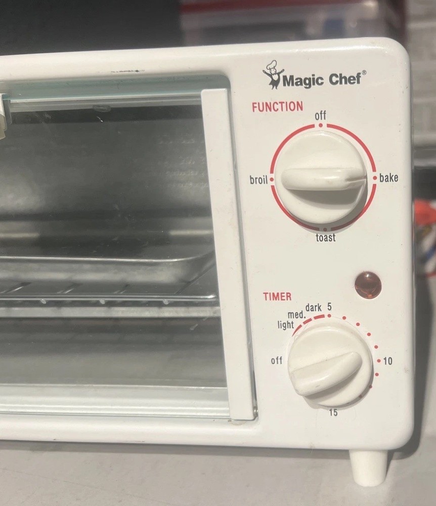 Works great and very clean. Looks like it was only used once or twice. Ships fast! The Magic Chef Mini Toaster Oven & Broiler Model 678 in White is a compact and versatile kitchen appliance. With a power source of 120V, it is easy to use and efficient for baking and broiling small items such as frozen snacks, pizza, or even a simple roast chicken. Made of metal and designed with a sleek white color, this toaster oven adds a touch of style to any kitchen. The included rack and tray make it convenient for baking and broiling your favorite foods with ease. Perfect for small spaces or for those looking for a secondary oven for added convenience.
