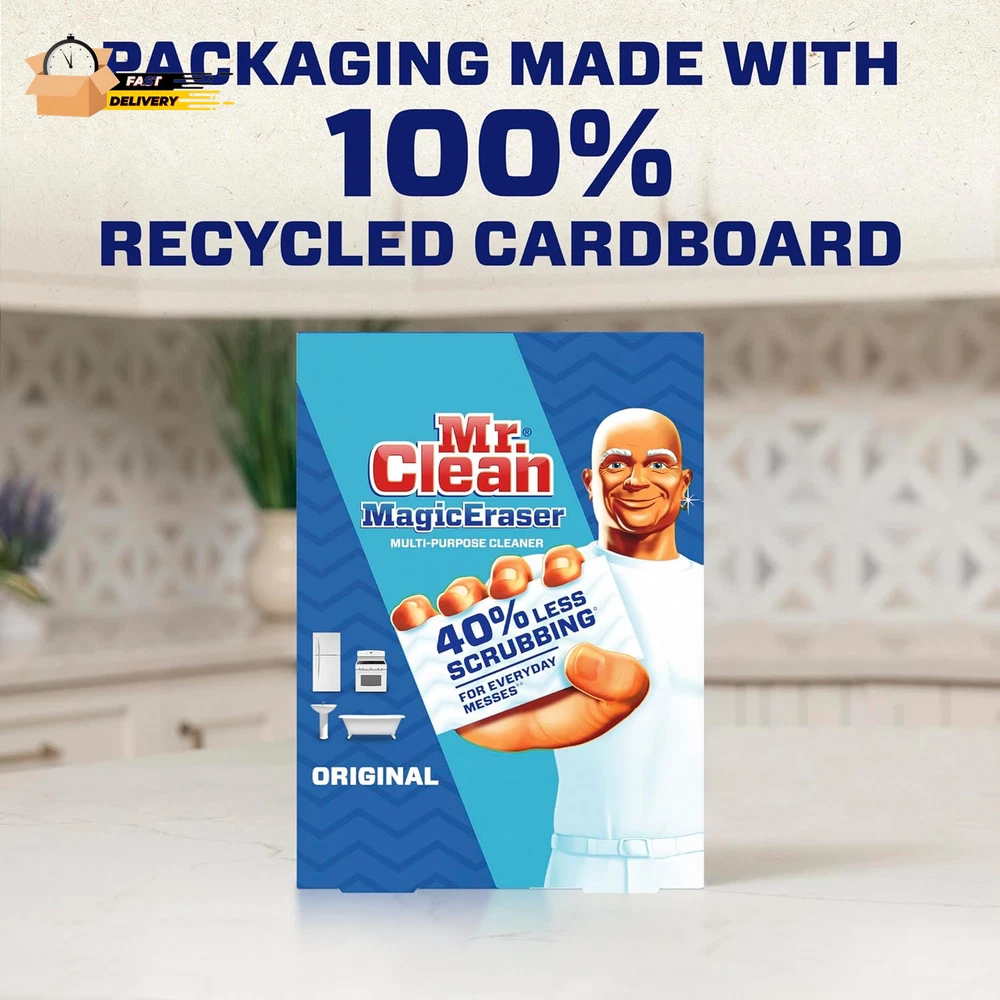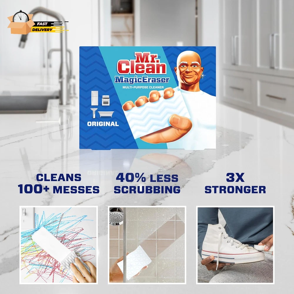Store New Arrivals Add to Favorite View Feedback Contact Magic Eraser Original Cleaning Pads, Multi Purpose Cleaner, Bathroom Description Item model number 79009 Item Form pads Scent Unscented Product Dimensions 2.32 x 5.43 x 7.48 inches; 0.16 ounces Country of Origin USA Material Feature Spray Is Discontinued By Manufacturer No Specific Uses For Product Oven, Bathtub, Door Size 6 Count (Pack of 1) STRONGER CLEANING: Mr. Clean Magic Eraser is 3X stronger* for a superior clean *Cleaning performance vs. the leading all purpose bleach spray 2. VERSATILE USE: This all-purpose cleaner fights dirt all around the house. It works as a surface cleaner, wall cleaner, bathtub cleaner, oven door cleaner, and fights marks on light switches, doors & much more 3. POWERFUL CLEAN: The Mr. Clean Magic Eraser provides a powerful clean with water alone, no need for additional cleaning agents 4. VARIETY OF FORMS: Magic Erasers are also available in Ultra Thick, Ultra Foamy, Ultra Bath, and Extra durable forms, catering to a wide range of cleaning needs 5. SIMPLIFY CLEANING: With Mr. Clean Magic Eraser, you can say goodbye to the need for separate bathroom cleaner, shower cleaner, melamine sponge, all purpose cleaning spray, bathroom spray, brillo pads cleaning pads, bathtub cleaner, wall cleaner, oven cleaner, scrubbing powder, scrubbing cream, stovetop cleaner, glass-top cleaner Mr. Clean Magic Eraser Original scrubber is 2X Stronger* with DURAFOAM. Micro-scrubbers reach into the surface grooves, lifting away built up dirt and grime with water alone! Use it all around the house as a multi surface cleaner, wall cleaner, bathtub cleaner, oven door cleaner, or for erasing marks on light switches, doors and more! *Cleaning performance vs. the leading all-purpose bleach spray ABOUT US We offer the best prices around on high quality products. Our E-store includes media such as books, movies, music and games while offering electronics, toys, sporting apparel, clothing, tools, general home, garden items and more. SHIPPING We are always working hard to ensure your package arrives as soon as possible. Please understand that some factors like weather, high postal traffic, and the performance of shipping companies are outside of our control. We offer free shipping to the lower 48 states and ship within 2 business days of payment, usually sooner. We do not accept P.O. Boxes. Please provide a physical address. For shipping outside of the continental USA, we only use eBay's Global Shipping Program.The item is shipped to KY and then sent to the rest of the world. International customers are responsible for all duties and taxes. Continue to check out in order to calculate costs for shipping the item to your country. Messages regarding eBay's Global Shipping Program MUST be directed at eBay EXCLUSIVELY. RETURNS We offer a 30-Day Return Policy on items which you are not completely satisfied with. You have the option for a full-refund or an exchange of the item. No returns are available on items shipped outside of the USA. PAYMENT We accept PayPal. CONTACT US This page content is yet to come Please ad us to your favorite seller and visit again later Thank You CUSTOMER SATISFACTION We try our very best to make sure every customer is completely satisfied. If there's a problem, message us! We're happy to help. WE ACCEPT Copyright © 2021 AutoDS. | All Rights Reserved
