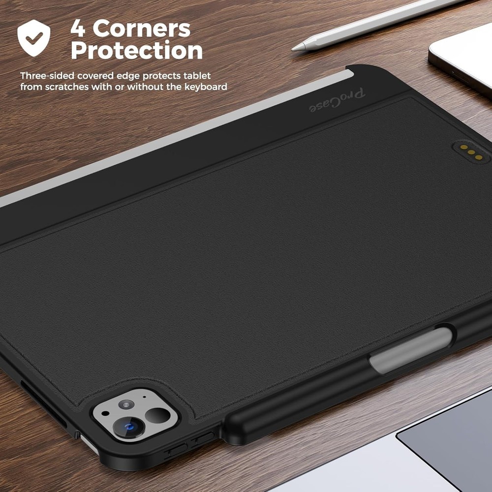 Warning! The Magic Keyboard Not Included:The ProCase iPad Pro 11 inch case works seamlessly with Apple Magic Keyboard and Smart Keyboard Folio, compatible with iPad Pro 11 inch (M5) 2025 (Model number: A3357,A3358,A3359) / iPad Pro 11 inch (M4) 2024 (Model number: A2836,A2837,A3006). Please check back bottom of your iPad to find the model number "Axxxx". No Need to Take off The iPad Case: This back case allows your magic keyboard to connect to your iPad pro seamlessly. You no longer need to take off the iPad case Built-in Pencil Holder: It features a pencil slot at the top that supports Apple pencil Wireless charging; Easily take your pencil out and put it back Seamless Fit & Lightweight: The three-sided design case is slim enough to close the Magic Keyboard and iPad Pro seamlessly; It barely adds any extra bulk to the iPad Pro while offers your iPad Pro a extra protection, inner soft microfiber lining won't scratch your device Extra Protection & Hassle-free Use: Offers daily protection of the back and side when you're not using the Magic Keyboard; Attach it magnetically to the Keyboard when you are ready to type. Full access to all features (Cameras, Speaker, Ports and Buttons)