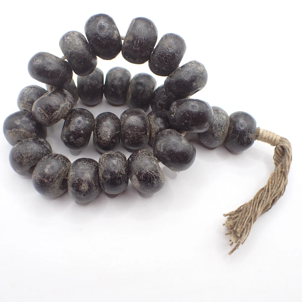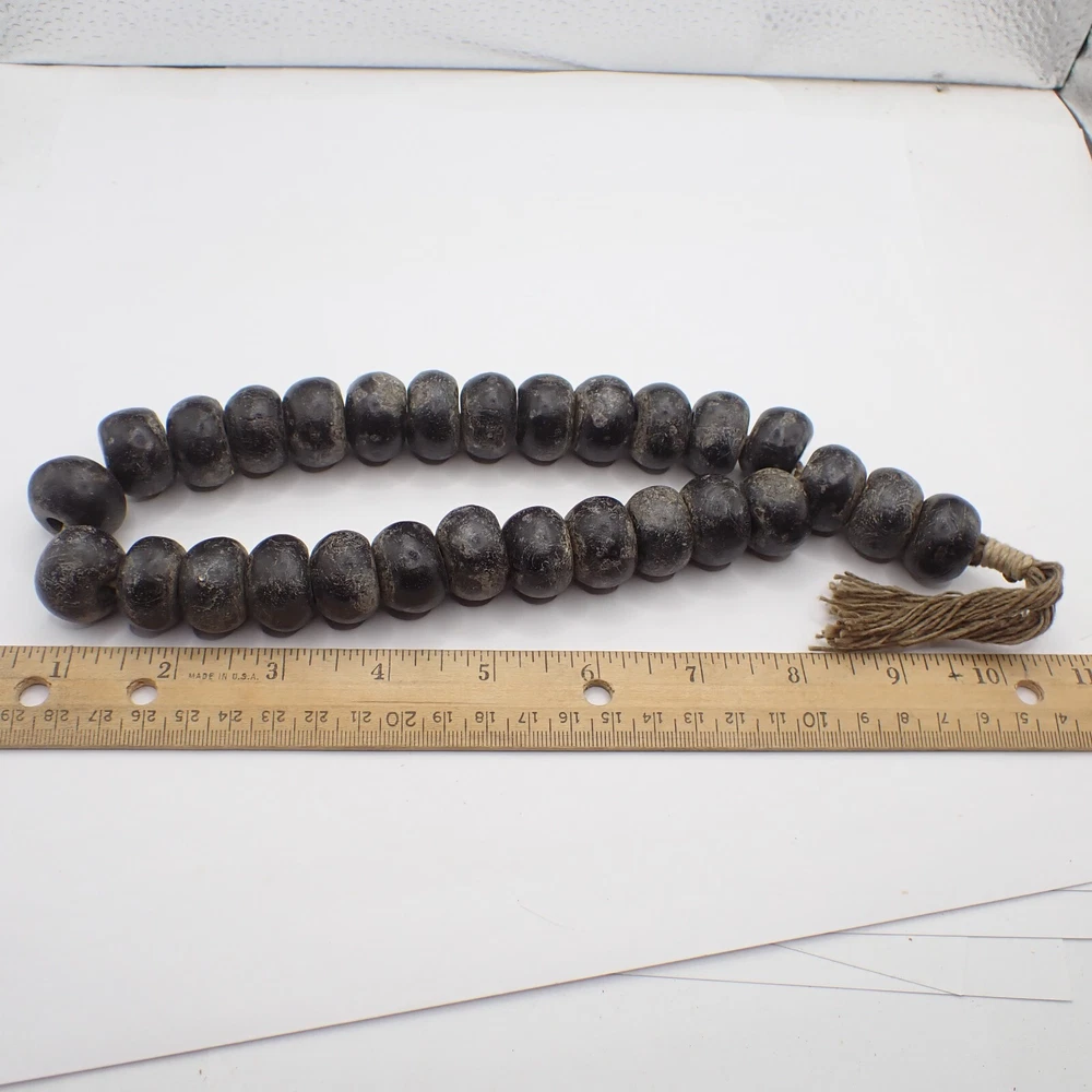 origin: Thailand # of pieces: 28 material: wood length: around 18 inches size: the beads are all around 14 x 23 This is a very unique and lovely buddhist prayer Mala. These types of items are traditionally made by monks in Thailand in order to support the monastery and as talisman's for their adherents. Don't miss your chance at this lovely and unique Buddhist decor prayer Mala! Customer satisfaction is our number one priority. Please fell free to contact us with any questions. We are always happy to help!