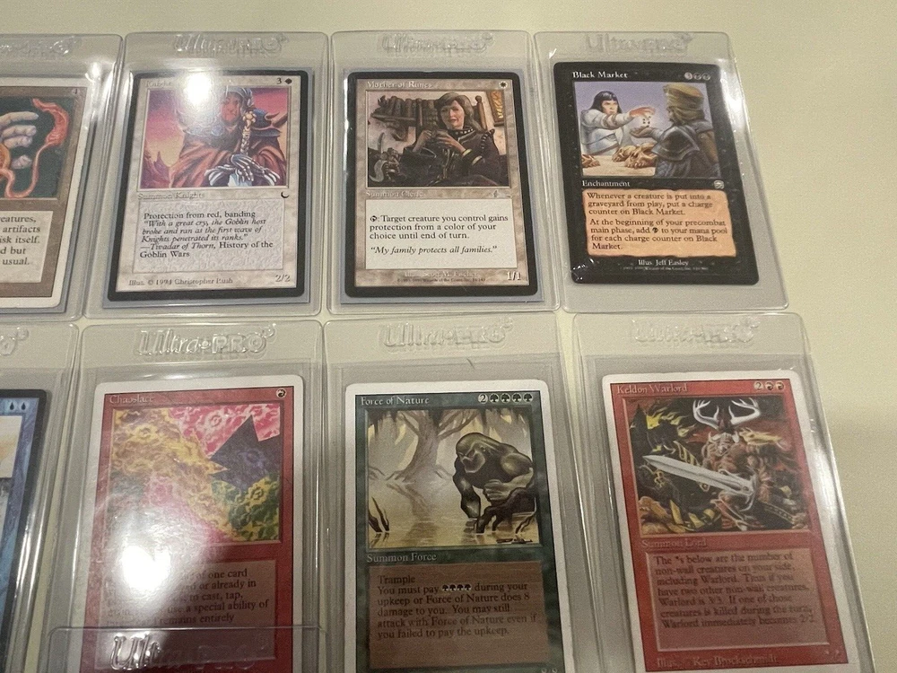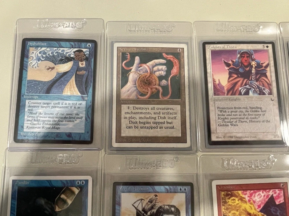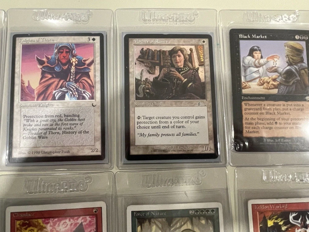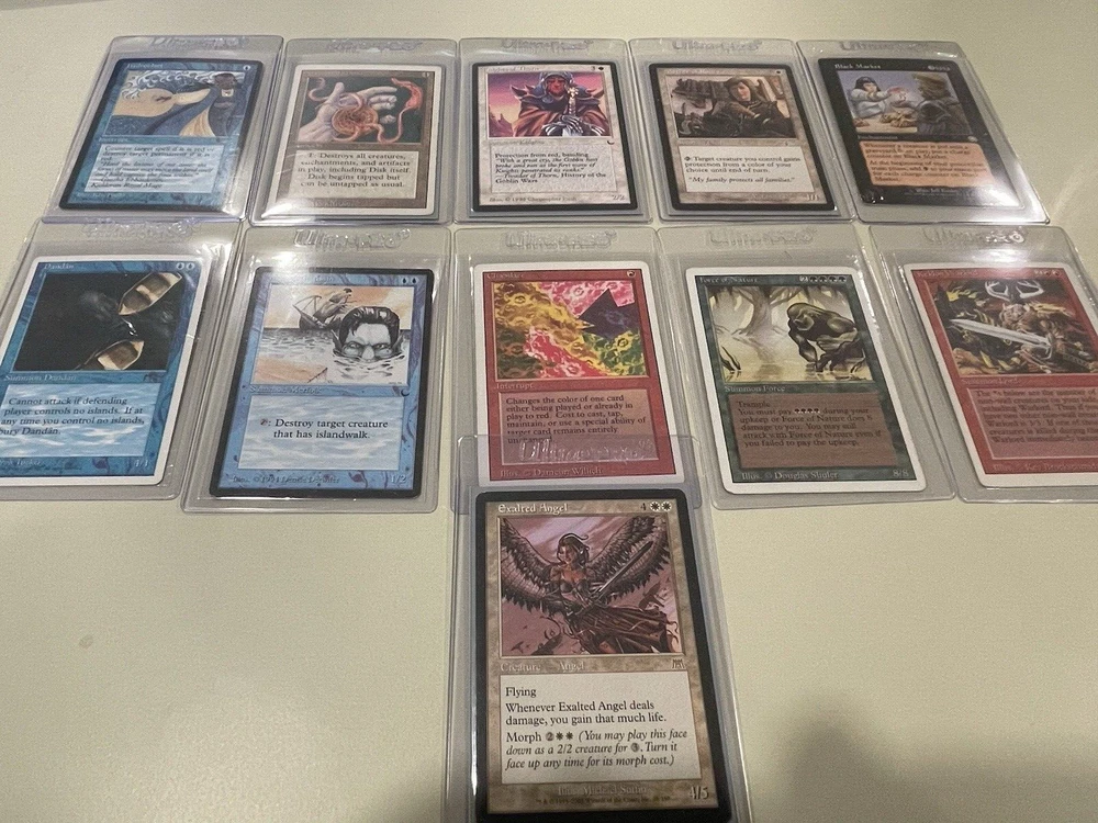 This Magic The Gathering 11 Card Lot is a vintage collection that includes a variety of cards from different sets such as The Dark, Revised Edition, and Ice Age. The cards are lightly played and come in a standard size. The set includes cards of different colors such as red, white, blue, black, and green. The cards in this lot are perfect for collectors or players looking to expand their collection. The set includes a mix of creature, instant, sorcery, and artifact cards with a regular finish. The cards are in English and were manufactured by Wizards of the Coast in the United States. This lot is a great addition to any Magic The Gathering collection!