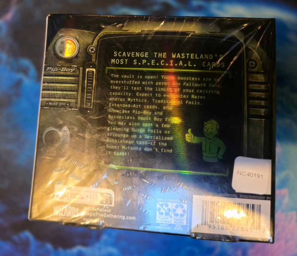 War... War never changes... This rare Magic the Gathering collector boosters box is for the Universes Beyond: Fallout set and is full of all the iconic imagery and quirky characters you've come to know and love. The set has beautiful illustrations featuring retro futurist designs as well as apocalyptic landscapes and is sure to delight any Fallout or Magic the Gathering fan. This box contains 12 collector booster packs filled with beautiful holofoils just waiting to be added to your collection, you never know what you might pull! These booster boxes were purchased by the seller from a card shop brand new while they were still being sold at retail and have been kept sealed and stored well since then.