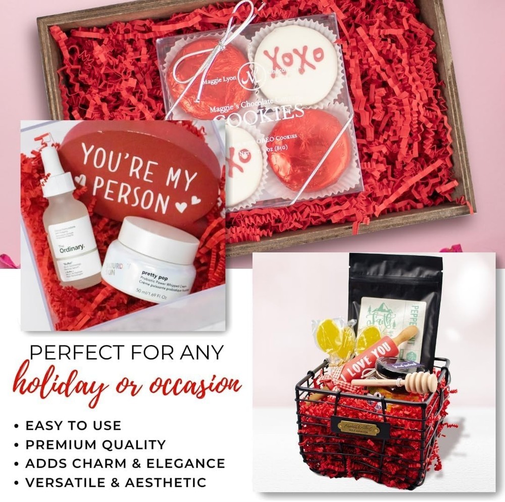 Previous page Next page Turn every Valentine’s gift into something magical with our colorful crinkle cut paper. It’s the perfect way to fill gift boxes, candy jars, and more with heartfelt charm. Add that special touch that makes your Valentine’s Day celebrations stand out! Shop Our Wide Variety of Colors More For You To Choose From Another advantage of crinkle cut paper shred is that it is available in a wide range of colors, making it easy to match to your brand or product. This can add a professional touch to your packaging and help your products and gifts stand out. Overall, crinkle-cut paper shred is a great option for anyone looking for an easy-to-use and versatile packaging material. Its attractive appearance, cushioning properties, and ease of use make it an excellent choice for a variety of applications.