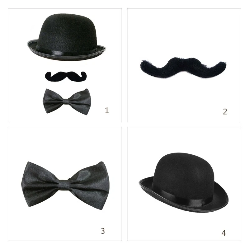 Features: These hats and faux moustache are a great accessory for any adult or kid costume. Use for Halloween, holiday parties or any costume bashes. These high quality enduring hats are of excellent quality. Wear them again and again to join any party. back to the different decade of american from to entertainment at circus and carnivals. This is a timeless black top hat that is sure to fit in a variety of costumes and thoughts. These formal hats work well with a tuxedo for white shirt and bowtie like what gentleman wore. These are perfect hats for dress up and role for play. Wear it on a whims just for the fun of something difference. Specifications: Material: Cloth for Head Circumference: Approx. 50-60cm/ 19.68-23.62in Type: Suit, Moustache, Bowtie, Hat Package Includes: 1set/1pc Cosplay Supplies note: Please allow 1-2cm errors due to manual measurement, make sure that you do not mind before you order. 2. Due to the difference between different monitors, the picture may not reflect the actual color of the item.