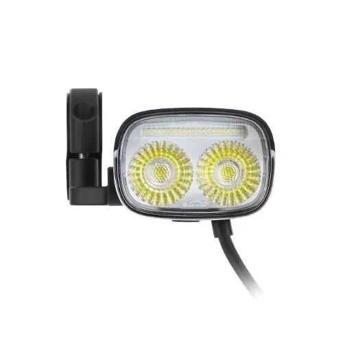 Description Our latest ME 2000, designed specifically for e-bike riders, is connected and powered directly by the output of the e-bike motor. 2000 lumens of max output emitted from two highly power-efficient LEDs, it is well suited for mountain biking and road cycling. The quality of light depends largely on the power and precision of its optical components, and we sure have invested a lot of time and effort into perfecting the ME 2000’s front lens. When matched with supremely powerful LEDs, the beam pattern produced is incredibly bright, yet smooth and homogeneous with soft edges and no hot spots. An always-on Daytime Running Light engineered in the lens greatly increases the level of passive visibility for riders travelling along a busy road. A brightness sensor is constantly detecting ambient light levels and automatically switches on the main LED from DRL when the environment becomes poorly lit, such as at nighttime or when the rider has entered a tunnel. With its one-sided aluminium holder, the ME 2000 can be installed on either side of the stem on the handlebar without removing a grip, shifters or brake levers, though only compatible with 31.8mm and 35mm handlebars. The adjustable light head provides a wide arc of light (up to 45°, down to 90°). Stability is much-improved thanks to the integration between the mount and the ME 2000’s one-piece aluminium alloy housing which offers IPX6 waterproof rating. Aside from providing excellent protection and durability, a large-area metallic shell is extremely conducive to heat dissipation, in conjunction with its highly advanced internal smart thermal management system, ME 2000 is able to maintain its max output throughout a very long trip without throttling nor wearing down its core components. ME 2000 is able to adapt itself to power provided by most drive systems of various e-bike manufacturers(6v/12v Bosch, Shimano, Brose, Yamaha.) within a 6-12V range. Max lumen capability is directly correlated to input DC voltage and max allowed amps. Output: Details: Aluminium alloy Output: 600-2000lumens, which differ with different motor power. DRL Output: 25 lumens 6v/12v (Bosch, Shimano, Brose, Yamaha). Throw 220 metres You must buy a separate E-Bike cable compatible with your motor ( Shimano / Bosch / Borse / Yamaha) Contents: 1 x ME 2000 2 x Silicone Pad 1 x 3mm hex 1 x User Manual Sold separately E-Bike wire/cable kit available in drop down box. Options: ME2000 headlight only Wire kit suit Bosch Performance Line CX Gen4 Smart MS-MJC6 wire kit only Wire kit suit Bosch connection cable MS-MJC3 wire kit only Wire kit suit Shimano & Bafeng Motors MS-MJC1 wire kit only Wire kit suit Yamaha Male connection MS-MJC7 wire kit only Thank you Geelong Bicycles