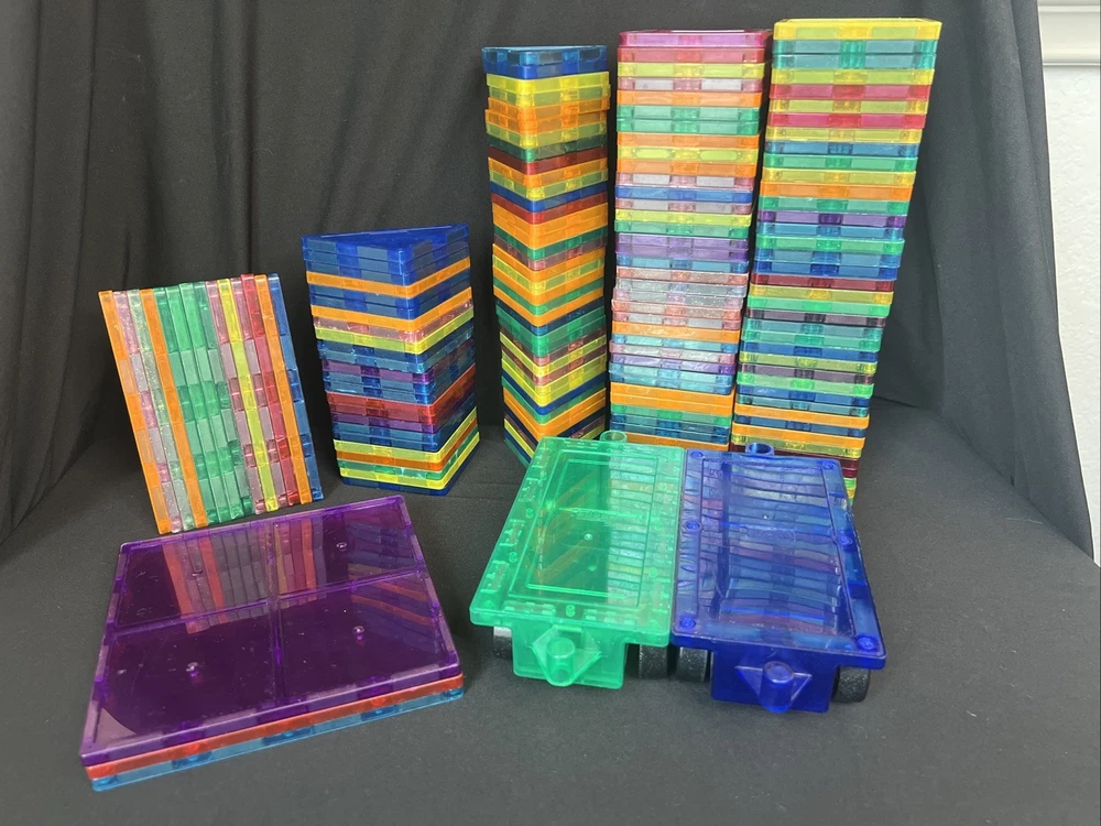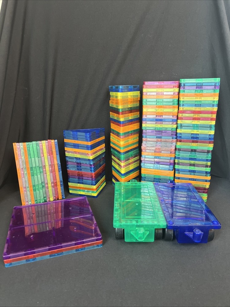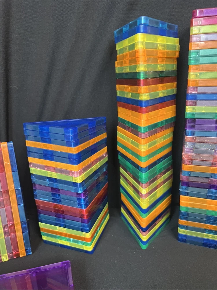 The product is a lot of 160 magnetic tile building blocks from the brands Magna, Picasso, and Playmags. These magnetic building sets are designed for ages 14 and up and feature a construction and architecture theme. The tiles can be used to create various structures and designs, making it an engaging and creative toy for older children and adults interested in building and problem-solving. CONDITION: Pre-owned Please look at all photos as they are part of the Description (make sure you want it). The photos are of the actual item you are purchasing. No Refunds, No Guarantee, Items are sold "AS IS" and No Returns are accepted unless otherwise listed with condition. If it’s not in the photo’s It’s not included, Only have what’s in the photo’s. This does not include hangers, stands, tiered trays, or any items used to display products. I attempt to take quality photo's of the "actual Item, Please be aware the lighting, monitor settings & other factors can affect colors. All measurements are approximate. Please Ask any Questions before you purchase!!! Please check out my other listings - New items are listed daily! Add me to your favorite Sellers list for quick access to new listings!! Quick Shipping - items are shipped same day as payment, latest day after Thank you