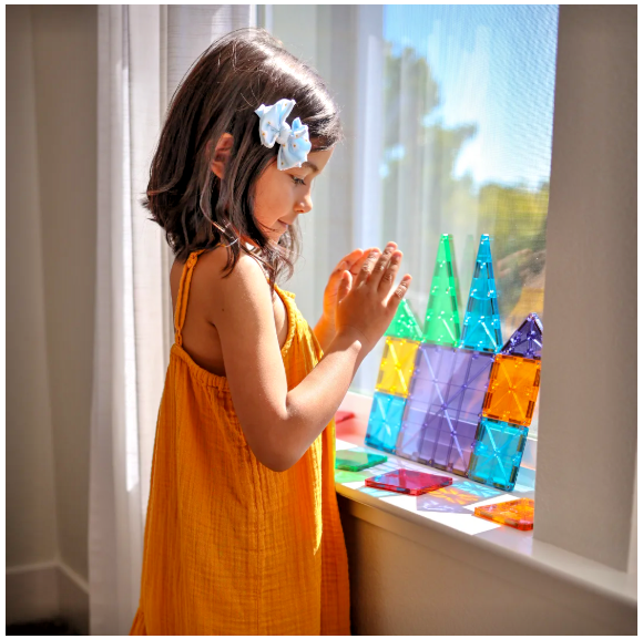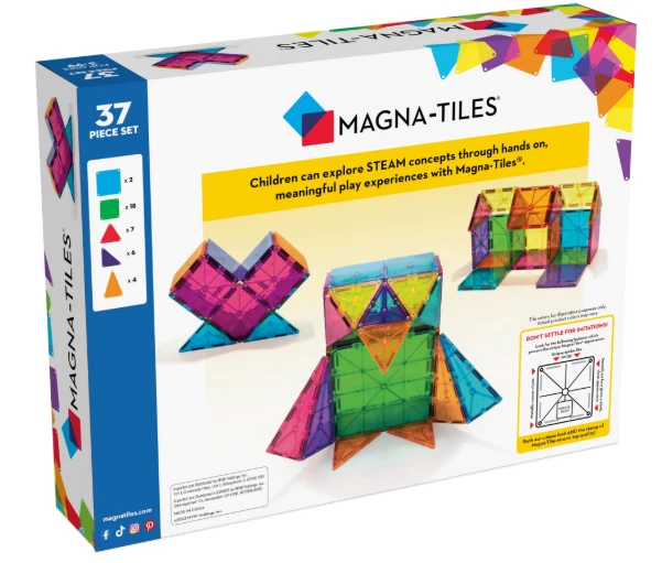 About this item: What Makes It Unique: Features 37 classic geometric shapes in primary colors. A true classic! Developmental: Certified STEAM toy, per Dr. Gummer’s Good Play Guide™, in partnership with The Toy Association™, for aiding in the development of fine motor skills, bilateral coordination, cognitive skills, executive functioning, creativity and more! Great for Gifting: Great starter set for families with 3+ year olds. More to Explore: Get started with the MAGNA-TILES® Classic 37-piece set and see where the kids’ imaginations go next! Cars, Animals, Dinosaurs, oh my! Always Compatible: All pieces are compatible with and complementary to all other MAGNA-TILES sets. Safety Guaranteed: All MAGNA-TILES pieces are built to withstand countless hours of playtime. Our signature lattice prevents cracking, while fastening rivets keep magnets safe and secure. Superior Quality: MAGNA-TILES pieces are made from food-grade, non-toxic MABS plastic that’s free from BPAs, phthalates, and latex. Our magnets are selected with kids in mind, letting them easily pull apart tiles for safe, frustration-free building. Made With Purpose: MAGNA-TILES sets are loved by builders ages 3-99 and designed for kids to enjoy, without instructions or adult assistance. We're advocates for Meaningful Play, that is: Fun and Engaging, Experience Based, Child Led and Developmental.