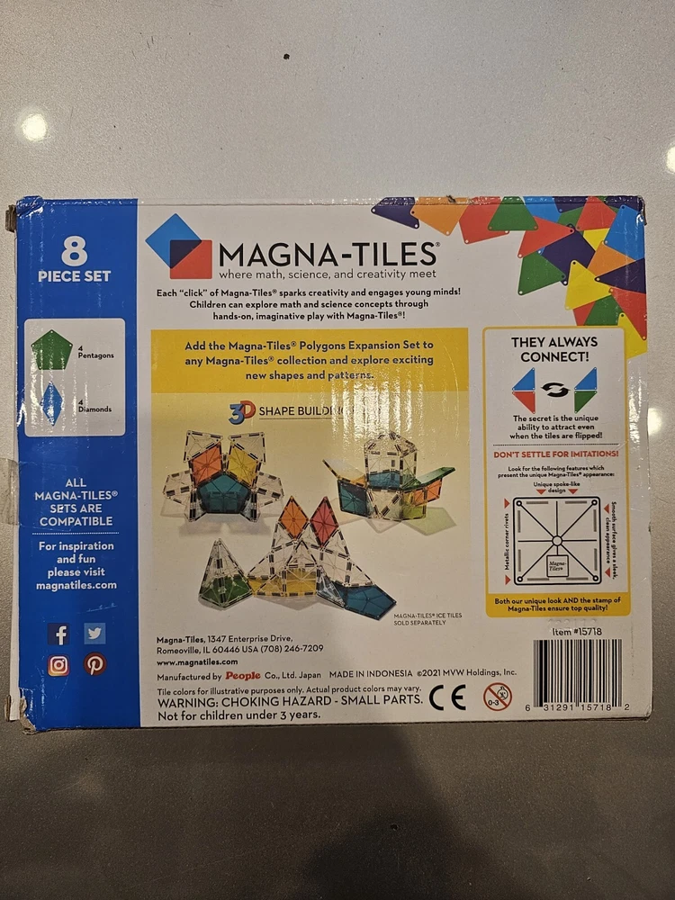 Magna-Tiles 8 Piece Set 4 Pentagons 4 Diamonds Polygon Expansion by Clear Color