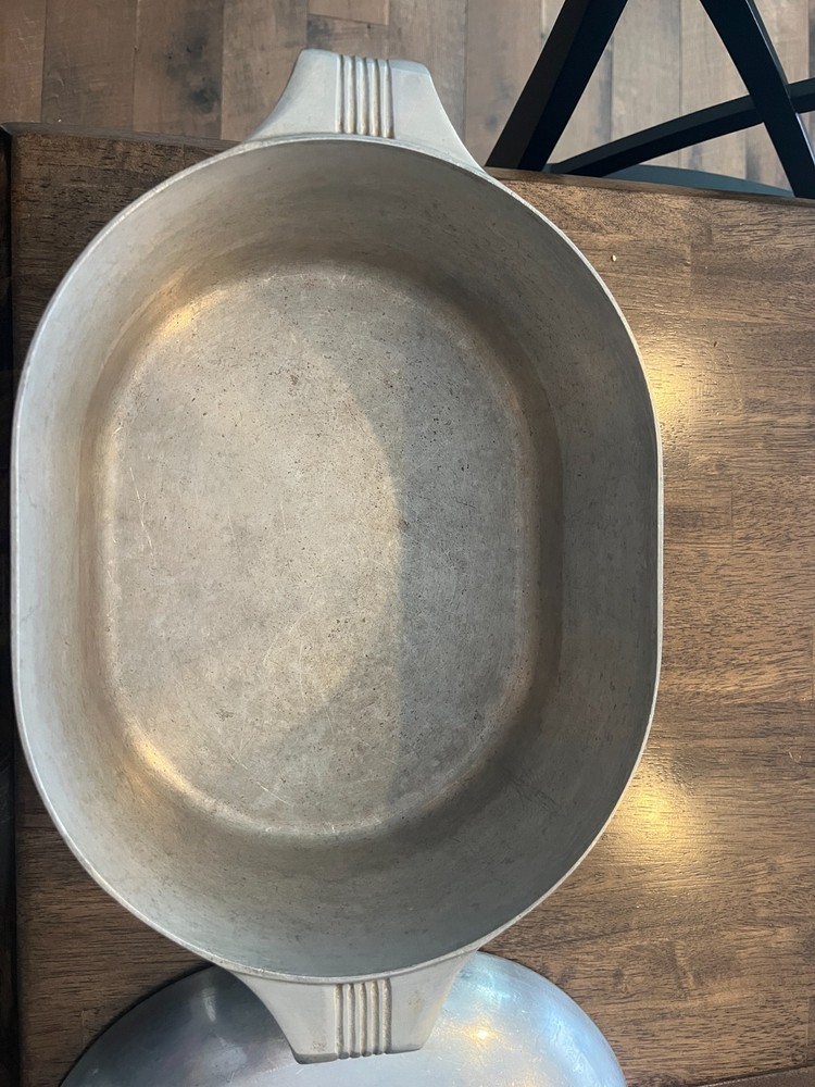 Color:SilverItem Length:12.75"Type of Oven:Electric, GasType:Dutch OvenSurface Coating:AluminumSet Includes:LidShape:OvalStove Type Compatibility:Electric, GasBrand:MagnaliteMaterial:AluminumTime Period Manufactured:1950-1959Model:Magnalite GHCFeatures:Double Handle, Flat-Bottomed, With LidVintage:YesNumber of Items in Set:Two-PieceCountry/Region of Manufacture:United StatesOriginal/Licensed Reproduction:OriginalAntique:NoCapacity:8 Quarts