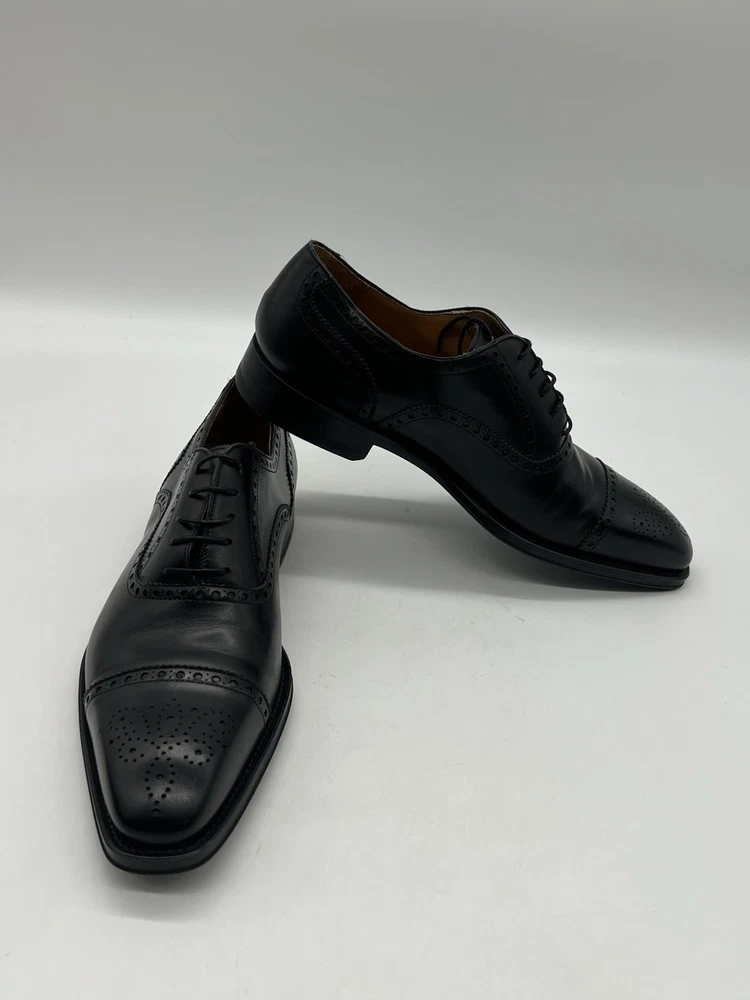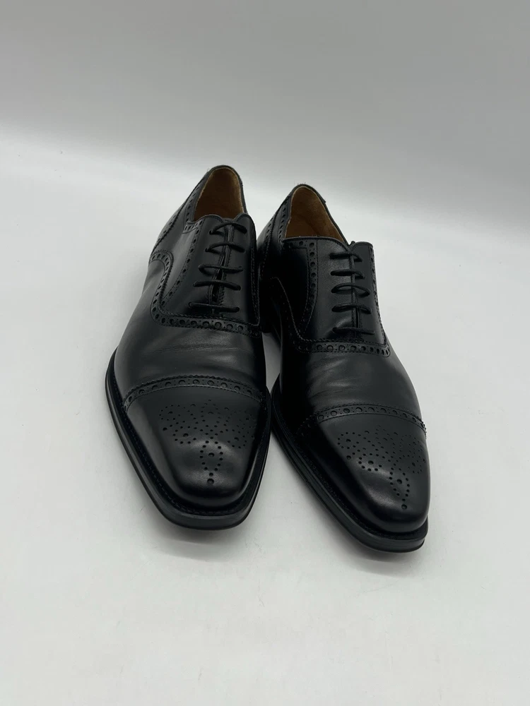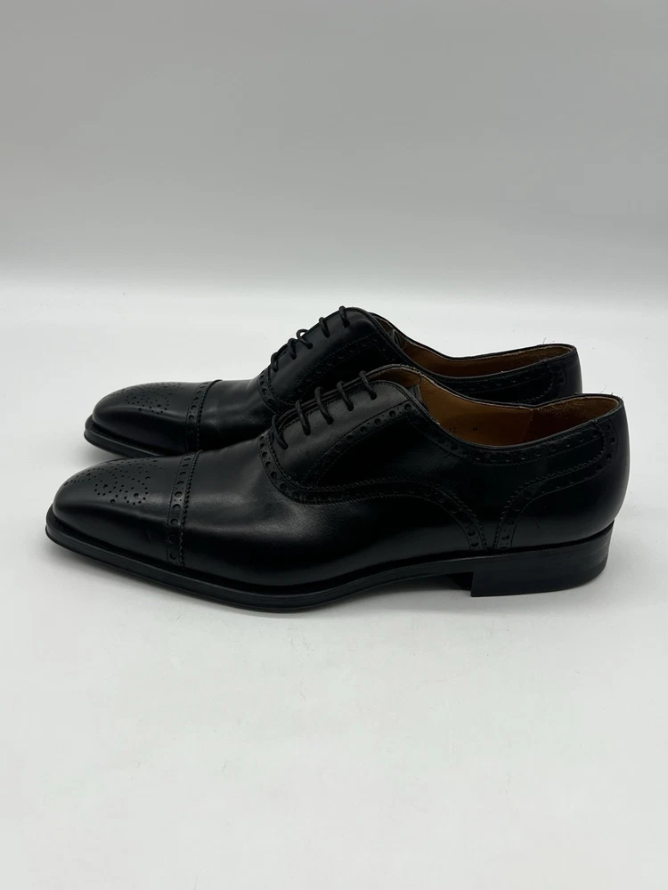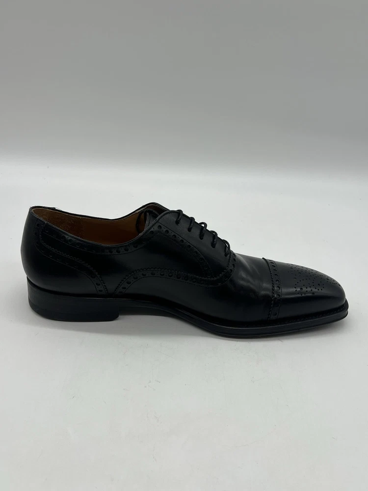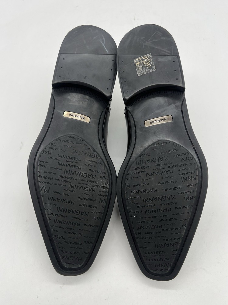 Magnanni Medallion Men 12M BLack Leather Cap Toe Wingtips Oxford Shoes MSRP $425. Shoes are in used condition and have signs of wear but shoes are in excellent condition. Upper leather is in excellent condition and very clean , inside is clean and the soles are in excellent condition. Nice comfortable shoes for casual wear or business wear. Condition is pre-owned. Shipped with ups or usps priority mail. Sold as pictures. Thank you! Feel free to message me for any questions. Thank you