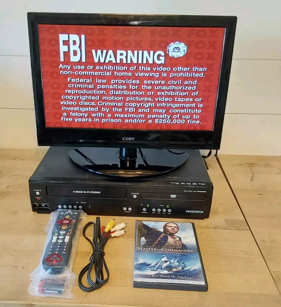 Comes with dvd/vcr player, remote, and cables. The small tv pictured is not included in the sale. It is for demonstration purposes only. This has been tested and is working.