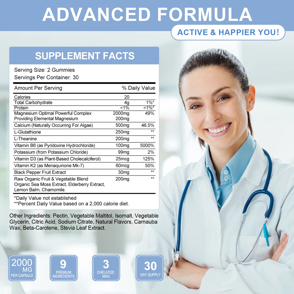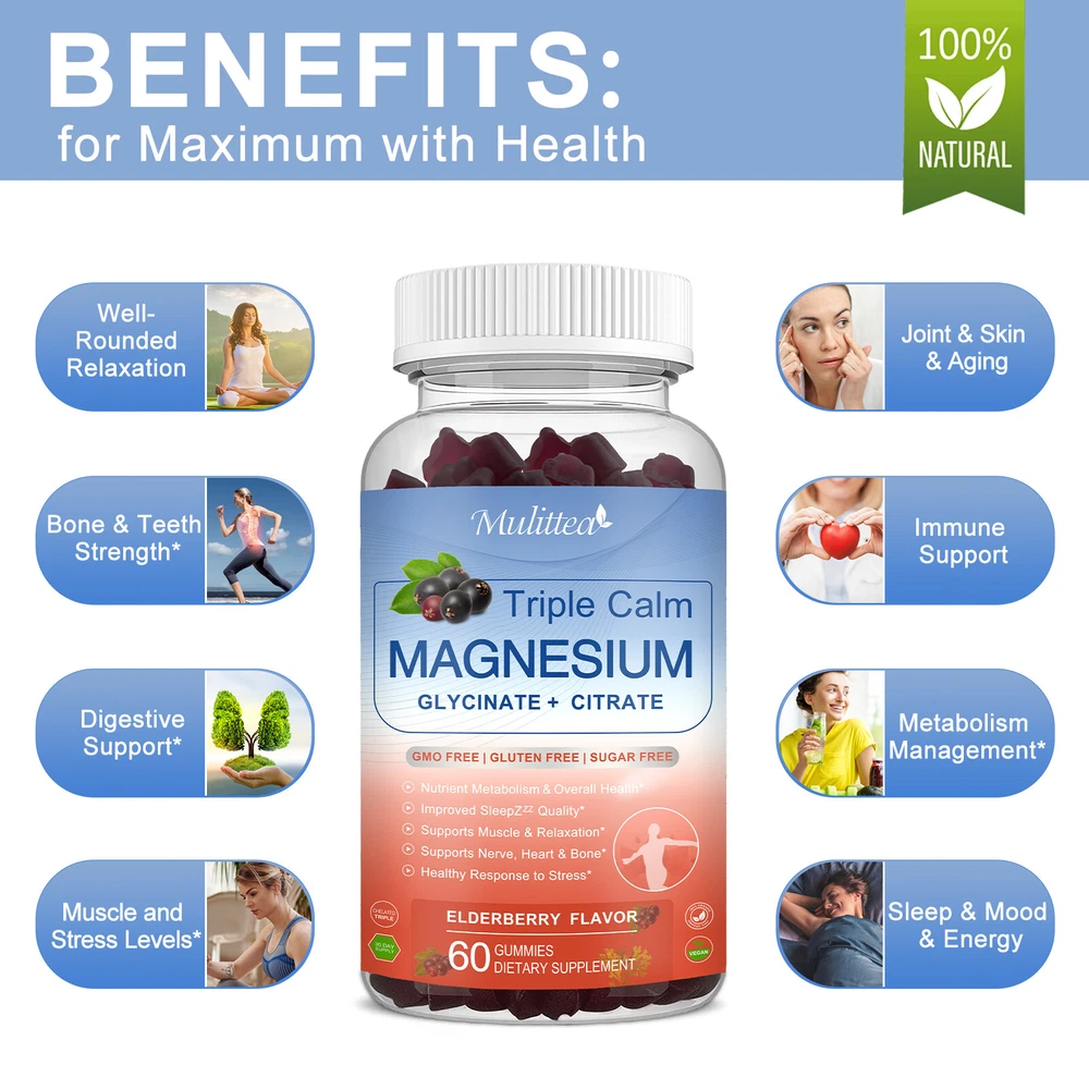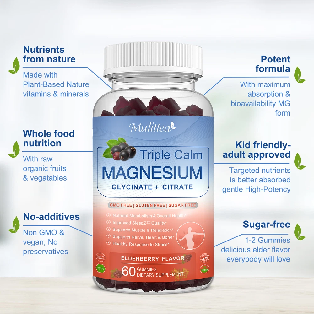 ♥♥ Features ♥♥ ♥ Magnesium supplements gummies can promotes healthy muscle, nervous system, sleep support & healthy relaxation, it can enhanced stress resistance, against leg cramps, improve your mood, help you to relax and fall asleep easily. ♥ Easy to Chew Natural Raspberry flavor Gummy is the most pleasant tasting formula which delivers multi-nutrients, you’ll find yourself reaching for more. ♥ Elderberry Flavor Magnesium Glycinate Gummies Natural raspberry juice, Pectin-based, Sugar-Free, vegan-friendly, and non-GMO, and supports keto, and vegetarian diets. No harsh additives, just clean support. ♥♥ Detail Images ♥♥