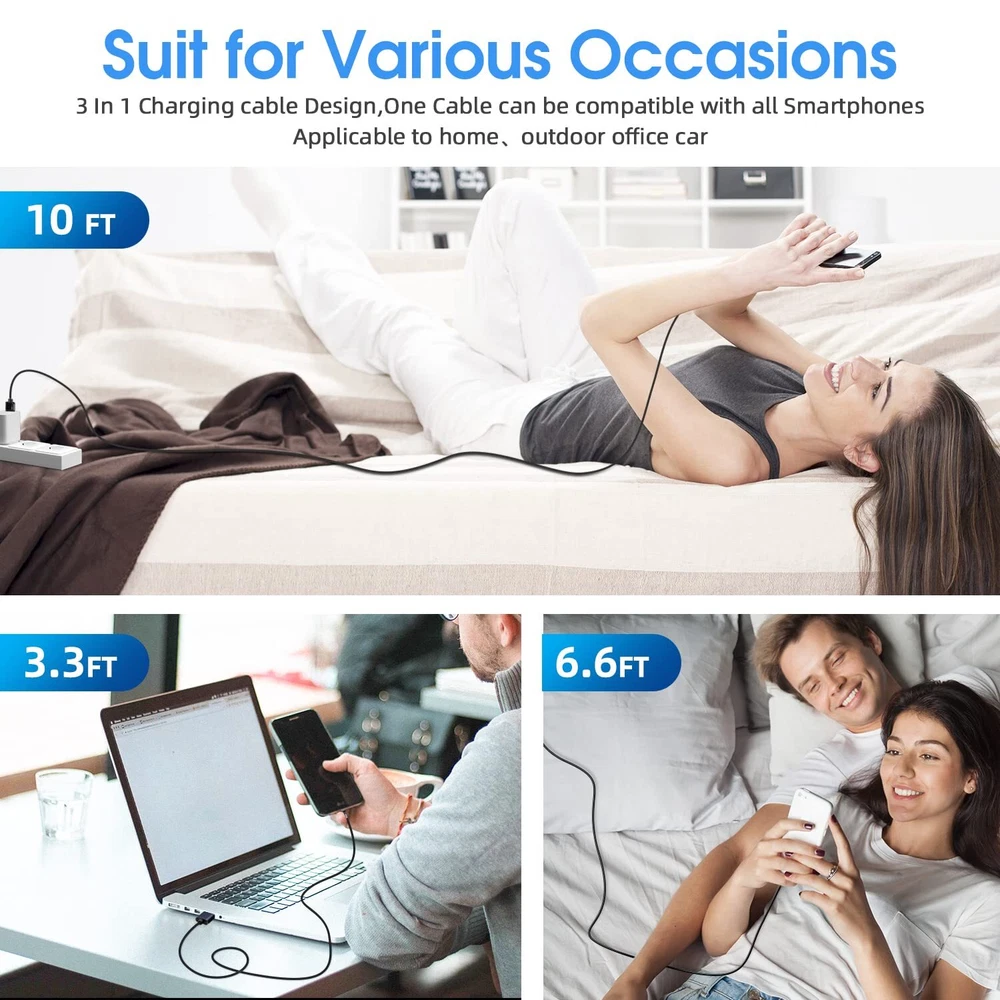 【540°Rotation Design】The upgrade magnetic charging cable allows magnet tip to rotate 360° and charging head to bend 180°, this convenient design allow you to find the right angle for every charging occasion. Precisely completes the magnetic connection, which improves charging efficiency and super convenient. 【3-in-1 Magnetic Charger Cable】This magnetic phone charger cable use for most charging device, equipped with 3 different types of magnetic tips which is Micro USB & Type C & i-Product. One cable can be charging different smartphone devices, make the phone charger simple, lightweight and portable. 【One-Hand Operation】These magnetic USB charging cables support magnet connect automatically. The strong magnetic can be ensure the stable connection. You can use one hand to operate this phone charge cable to make charging on/off, it is convenient and safe while you are driving a car, it’s the best choice for drivers, vision impaired, elders persons. 【Interface Dust-Proof & LED Light Design】magnetic cable Inserting the magnetic tip at the charging interface of the phone can prevent dust from sticking, reducing abrasion during inserting or pulling out the cable, prolonging the life of your device. LED lights are designed to help you find cables more easily in the dark, and Soft lights won't interfere with your sleep. 【Multiple Lengths】USB magnetic charging cable with different length combination (3ft,3ft,3ft,6ft,6ft,10ft) for a variety of occasions, Enjoy charging always and everywhere. (Note: This magnet charger cable just Support Charging Not support Data transfer. Do not compatible with Car-Play, Android Auto).