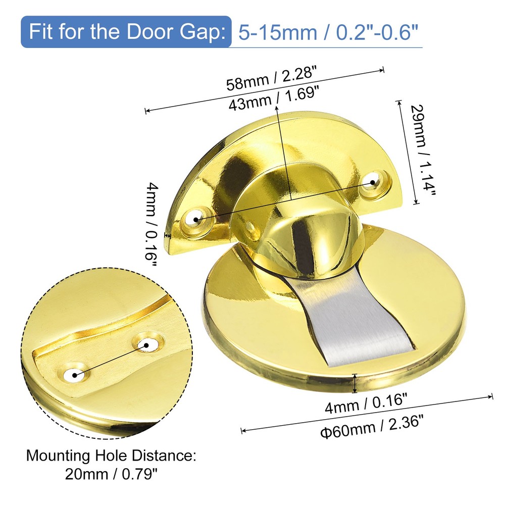 Document Description:1. Material: Magnetic door stop is made of zinc alloy, the surface after-coating treatment, can prevent rust and resist daily scratches and corrosion, long-term durable and reliable.2. Advantages: Simple and effective door magnet, its working principle is very simple, and the magnet installed on the door always attracts the baffle on the floor.3. Installation: Self-adhesive provides extra strength and durability, adheres tightly to protect your doors and walls, and also comes with screw mounting for more stability and durability.4. Application: The magnetic door stopper is compact, does not occupy space, is suitable for indoor doors, widely used in homes, bedrooms, bathrooms, offices, hotels, apartments and other places.Specification:Product Name: Magnetic Door StopMaterial: Zinc AlloyMain Color: Gold ToneFit for the Door Gap: 5-15mm / 0.2"-0.6"Strike Base Size: 60 x 4mm / 2.36" x 0.16"(D*T)Strike Base Mounting Hole Distance: 20mm / 0.79"Magnet Base Size: 58 x 29 x 4mm / 2.28" x 1.14" x 0.16"(L*W*T)Magnet Base Mounting Hole Distance: 43mm / 1.69"Package Content: 2pcs x Magnetic Doorstop, 4pcs x Double-sided Adhesive Tape, 4pcs x Expansion Tubes, 8pcs x Screws Magnetic Door Stopper, 2pcs Magnets Door Stops Door Catch, Gold Tone Description: 1. Material: Magnetic door stop is made of zinc alloy, the surface after-coating treatment, can prevent rust and resist daily scratches and corrosion, long-term durable and reliable. 2. Advantages: Simple and effective door magnet, its working principle is very simple, and the magnet installed on the door always attracts the baffle on the floor. 3. Installation: Self-adhesive provides extra strength and durability, adheres tightly to protect your doors and walls, and also comes with screw mounting for more stability and durability. 4. Application: The magnetic door stopper is compact, does not occupy space, is suitable for indoor doors, widely used in homes, bedrooms, bathrooms, offices, hotels, apartments and other places. Specification: Product Name: Magnetic Door Stop Material: Zinc Alloy Main Color: Gold Tone Fit for the Door Gap: 5-15mm / 0.2"-0.6" Strike Base Size: 60 x 4mm / 2.36" x 0.16"(D*T) Strike Base Mounting Hole Distance: 20mm / 0.79" Magnet Base Size: 58 x 29 x 4mm / 2.28" x 1.14" x 0.16"(L*W*T) Magnet Base Mounting Hole Distance: 43mm / 1.69" Package Content: 2pcs x Magnetic Doorstop, 4pcs x Double-sided Adhesive Tape, 4pcs x Expansion Tubes, 8pcs x Screws Hot Item Payment 1.We accept eBay payment . 2.Payment must be received within 7 business days of auction closing. Shipping 1.We ship to your eBay or Paypal address. Please make sure your eBay and Paypal address is correct before you pay. 2.Items will be shipped within 1-3 business day when we received payment. 3.Delivery time depends on destination and other factors. Description Policy Magnetic Door Stopper, 2pcs Magnets Door Stops Door Catch, Gold Tone Description: 1. Material: Magnetic door stop is made of zinc alloy, the surface after-coating treatment, can prevent rust and resist daily scratches and corrosion, long-term durable and reliable. 2. Advantages: Simple and effective door magnet, its working principle is very simple, and the magnet installed on the door always attracts the baffle on the floor. 3. Installation: Self-adhesive provides extra strength and durability, adheres tightly to protect your doors and walls, and also comes with screw mounting for more stability and durability. 4. Application: The magnetic door stopper is compact, does not occupy space, is suitable for indoor doors, widely used in homes, bedrooms, bathrooms, offices, hotels, apartments and other places. Specification: Product Name: Magnetic Door Stop Material: Zinc Alloy Main Color: Gold Tone Fit for the Door Gap: 5-15mm / 0.2"-0.6" Strike Base Size: 60 x 4mm / 2.36" x 0.16"(D*T) Strike Base Mounting Hole Distance: 20mm / 0.79" Magnet Base Size: 58 x 29 x 4mm / 2.28" x 1.14" x 0.16"(L*W*T) Magnet Base Mounting Hole Distance: 43mm / 1.69" Package Content: 2pcs x Magnetic Doorstop, 4pcs x Double-sided Adhesive Tape, 4pcs x Expansion Tubes, 8pcs x Screws Hot Item Payment 1.We accept eBay payment . 2.Payment must be received within 7 business days of auction closing. Shipping 1.We ship to your eBay or Paypal address. Please make sure your eBay and Paypal address is correct before you pay. 2.Items will be shipped within 1-3 business day when we received payment. 3.Delivery time depends on destination and other factors.
