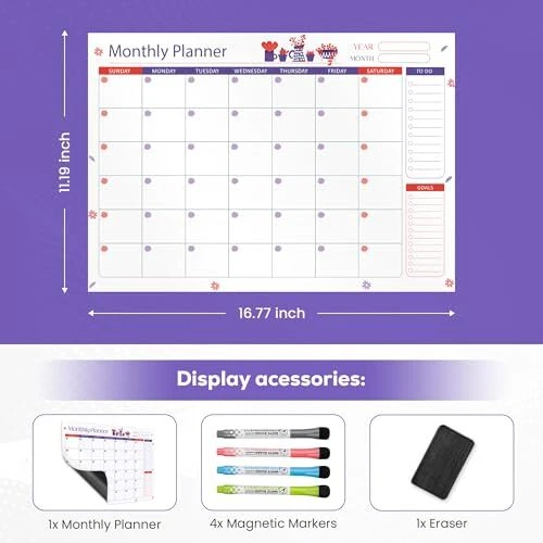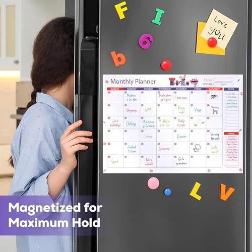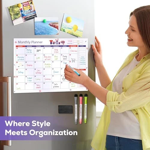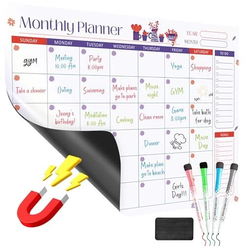 Return Policy Fast Delivery Trusted seller Magnetic Dry Erase Calendar for Refrigerator - Monthly,Weekly Calendar for Fridge - White Board Planner with 4 Dry Erase Markers and Large Eraser Product Description ✅ Magnetic calendar for refrigerator :Our premium-quality magnetic dry erase refrigerator calendar features a sleek design, Stay on top of your schedule with our calendar for refrigerator designed specifically for your refrigerator. Organise your month, week, or day effortlessly, whether it's for meal planning, family events, or work deadlines. ✅ Versatile and Customizable: Whether it's for family activities, meal planning, or work commitments, this fridge calendar adapts to your needs. Customise it with our colourful markers to make your schedule uniquely yours. ✅ Reusable and Eco-Friendly: Say goodbye to wasteful paper calendar. Our magnetic calendar for refrigerator surface allows you to wipe away old plans and start fresh each month, reducing paper clutter and environmental impact. This dry erase board fridge calendar is super eco friendly. ✅ Durable and Magnetic: Crafted from high-quality materials, magnetic calendar features a strong magnetic backing, ensuring a secure attachment to your fridge or any metal surface. No more slipping or sliding—your schedule stays put. You will not regret using our dry erase calendar as a your weekly planner and monthly planner. ✅ Stylish Design Home Decor: Designed to complement any kitchen house decor, our fridge calendar boasts a modern and minimalist design that adds a touch of sophistication to your fridge as home decor. This whiteboard calendar with its unique design will be great value in your kitchen. ✅Stay organized: The magnetic dry erase board is perfect for keeping track of upcoming events, birthdays, anniversaries, appointments, tasks and never forget important dates. Plan your month ahead with the fridge planner board and free your mind from busy schedule and trivia. This family calendar can be placed on any magnetic surface such as a refrigerator, magnet board, metal door, locker or a metal filing cabinet. Shipping Returns Payment Shipping Shipping is FREE to all addresses other than APO/PO boxes in the lower 48 states. All our stock ships from US-based warehouses. Shipped via USPS or UPS (depending on location and package weight) Unless stated otherwise, all orders will ship within 24-72 hours of your payment being processed. Check our feedback to see the great reviews of FAST shipping we offer. Returns Seller does not accept returns Payment We currently accept payment via eBay managed payments only. Once payment is cleared, we will dispatch your shipment within 1-3 business days. Please refer to the "Shipping" tab for more information regarding shipping speed to your destination.
