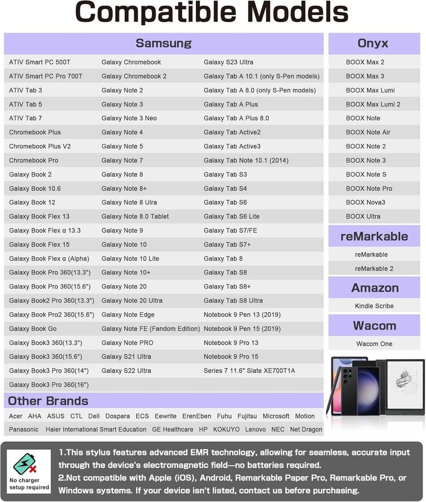 Compatible Model: Does not apply Item model number: EMR002 Compatible Devices: Remarkable 2 Tablet, Galaxy Tab S6/S7/S8 Item Width: Does not apply Compatible Screen Size: Does not apply Brand: Ciscle Compatible Brand: Does not apply Product Dimensions: 6.69 x 2.05 x 0.47 inches Item Weight: 1.44 ounces Item Length: Does not apply Type: Does not apply California Prop 65 Warning: Does not apply Material: Plastic Country of Origin: China Color: Black Features: Does not apply gtin13: NA Model: Does not apply MPN: EMR002 Manufacturer Warranty: Does not apply Item Height: Does not apply Country/Region of Manufacture: Does not apply Manufacturer: Ciscle UPC: NA