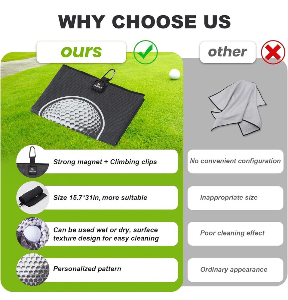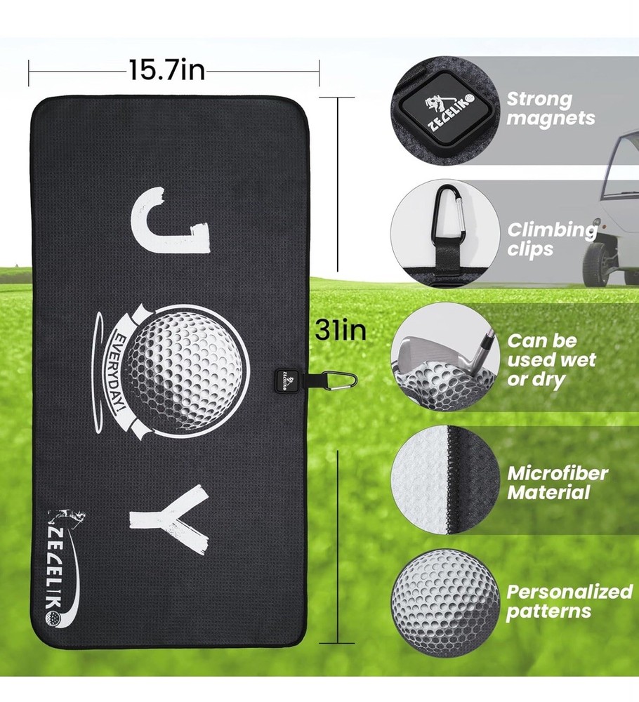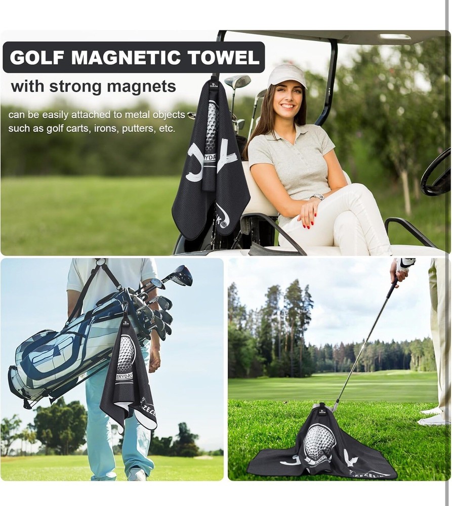 Magnetic Golf Towel Strong Magnets Attach The Golf Towel to Golf Bag or Cart, • MAGNETIC GOLF TOWEL: Equipped with powerful industrial-grade hidden magnets, this towel securely attaches to your golf bag, clubs, or cart. Simply touch your clubs to the towel, and it stays in place—no more bending over or searching for your towel. Designed for convenience and ease, it's the perfect accessory for a smooth, hassle-free round of golf.Ideal golf accessory for men and women. • WAFFLE KNIT DESIGN: Crafted from premium microfiber fabric, this golf towel offers exceptional softness and durability. Lightweight, tear-resistant, and abrasion-resistant, it is designed to be non-linting and long-lasting. Perfect for golfers, it provides reliable performance and remains in excellent condition through extended use. The ideal accessory for maintaining your golf clubs and gear. • POWERFUL CLEANING TOWEL: Waffle knit design ensures high absorbency and quick drying. Effortlessly removes sand, mud, dust, and dirt from golf balls and clubs. Machine washable, colorfast, and wrinkle-free. Air dries naturally to keep your golf gear spotless and ready. • PERFECT SIZE TOWEL: Measuring 31 x 15.7 inches (80 x 40 cm), this large towel is ideal for various sports like golf, gym, tennis, and outdoor activities. Features a heavy-duty carabiner clip for easy attachment and storage. Lightweight, compact, and easy to carry. • EXQUISITE PATTERN: Designed for style and function, this towel features elegant embossing that won’t fade or impact cleaning performance. Ideal for golf enthusiasts, it combines beauty with utility, making it a perfect gift. High-end design meets practicality. Item#k31