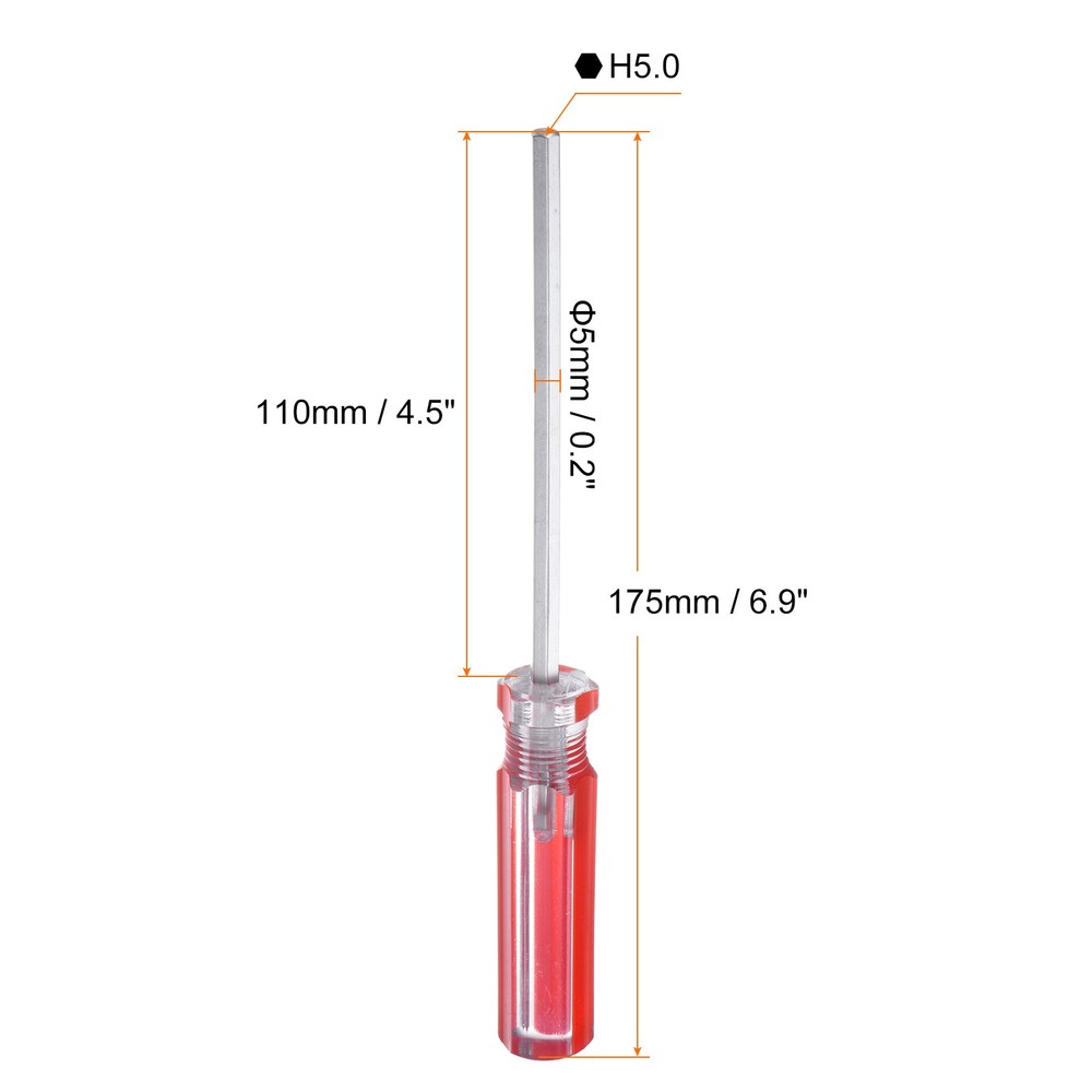 2pcs 125mm H6.0 CR-V Magnetic Hex Screwdriver Red Hexagonal Screw Driver