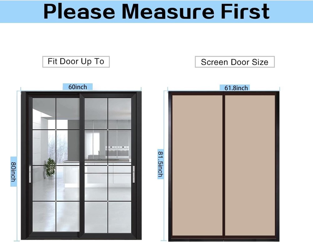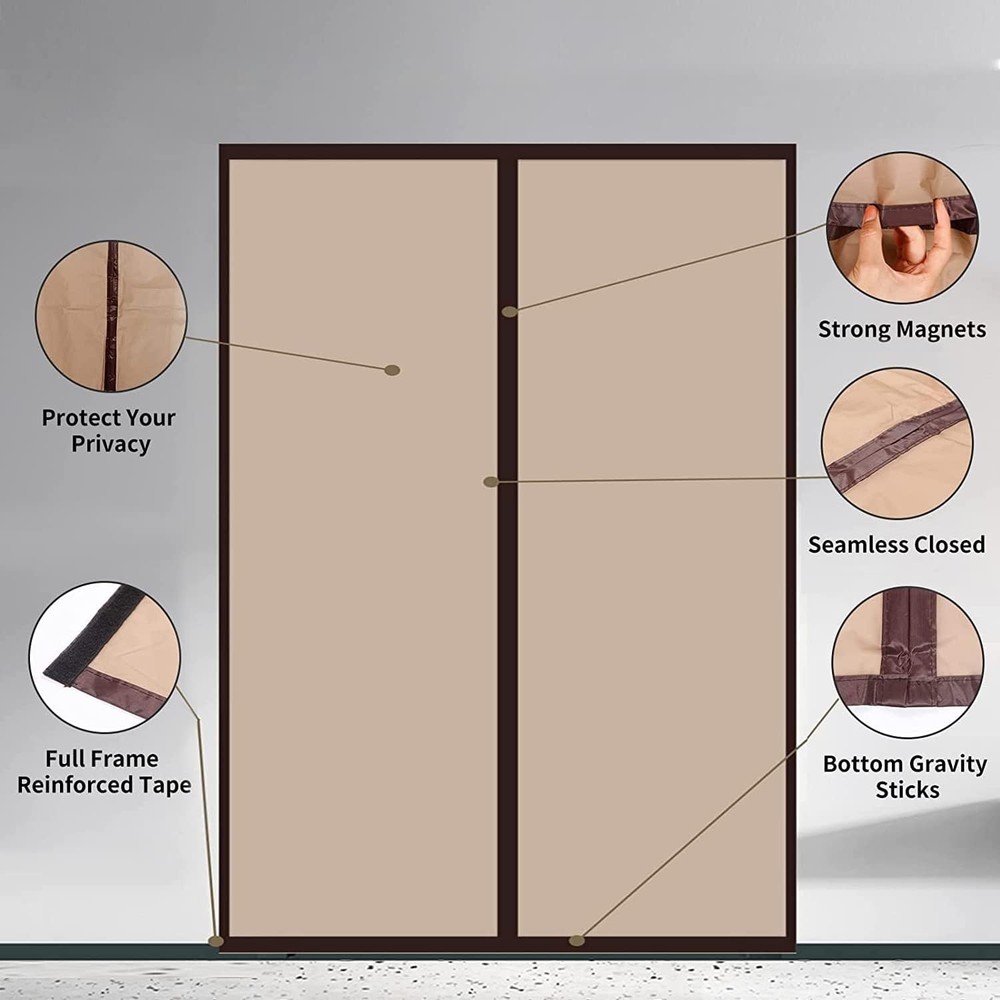 Magnetic Insulated Door Curtain, Fit Doors Size Up to 60" x 80", Coffee Product Details Brand: Veanusiver Color: Coffee Material: Eva Style: Thermal Item Weight: 2.14 Pounds Assembly Required: No Manufacturer: Veanusiver Item Weight: 2.14 pounds Product Dimensions: 0.2 x 60 x 80 inches Size: Fit Doors Size Up to 60" x 80" Batteries Included?: No Batteries Required?: No Brand: Veanusiver Color: Coffee Material: Eva Style: Thermal Item Weight: 2.14 Pounds 【Wide Range of Applications】 The EVA Insulated Door Curtain is 61.8 x 81.5 inches, which can be suitable for doors up to 60 X 80 inches. The doorway curtain is a great companion for air-conditioned rooms, which can prevent warm air loss in winter and keep the cold wind from entering, stop the cold air-conditioning escaping of your room in summer and keep hot air out. To achieve the purpose of saving energy and electricity, make you feel warm in winter or cool in summer. 【Full Frame Magic Tape Design】Veanusiver's Hands-Free Closure insulated door cover adopts the high-density and strongest materials. They are smooth and durable, non-odorous, easy to clean, and very safe for homes and pets. Good sealing performance keep the cold or heat out.It is also particularly suitable for the kitchen, which can prevent cooking odors from spreading in other rooms. 【Quality Assurance】The middle seam of the coffee screen doors with magnets is strategically lined with 19 powerful magnetic cubes that allow the door to open easily and close seamlessly! Made of EVA environmental microlight transmission thicknessmaterial, soft, durable, scratch - resistant, and washable. 【Easy to Install】 The doorway curtain is easy to install. No tools required, simply peel the adhesive backing off, apply for door frame. Our screen curtain uses the full frame Magic Tape design. Comes with a roll of magic tape to avoid dropping and enable you to remove the door screen any time,package included extra push pins to secure the screen into its place much more stable. 【Multi-Function】The temporary screen door can be used in many places, Thermal insulated door curtain is the best companion to air-conditioned room. Thickened materials reduce outside noise,provide you a quiet and private space! Can be used as a temporary door and suitable for main entrance doors, offices, stores, patio, deck, porch, balcony, glass, garage, sliding doors. Specification: Product Name: Insulated Door Curtain Screen Size: 61.8 x 81.5 Inch Fit Your Door Size: Up To 60 x 80 Inch Material: EVA Eco-Friendly Material Color: Coffee Package Includes: 1 x Insulated Door Curtain 1 x Roll of Magic Tape 1 x Pack of push pins 1 x Instruction